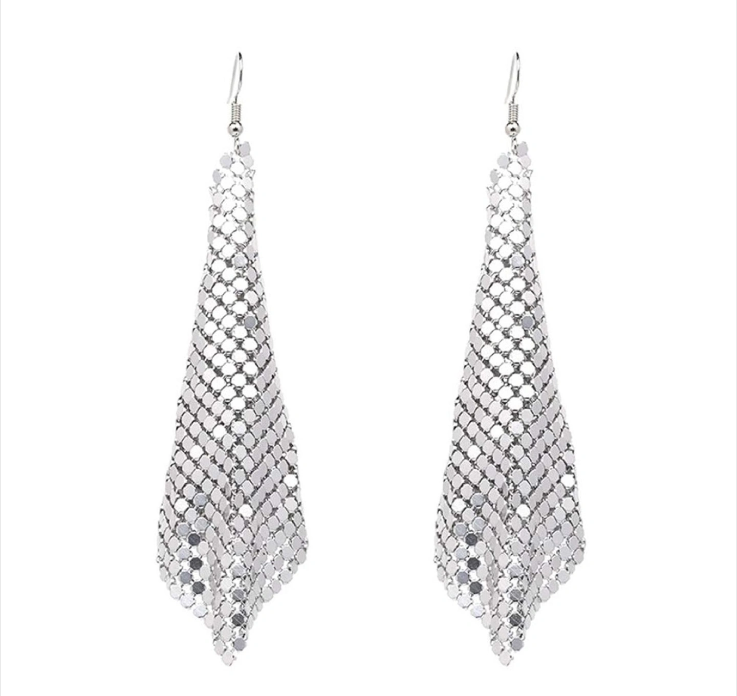 These silver tassel drop earrings are brand new and ready to add some sparkle to your look! They're about 4.1 inches long and weigh 9 grams for the pair, so they're lightweight and comfortable to wear