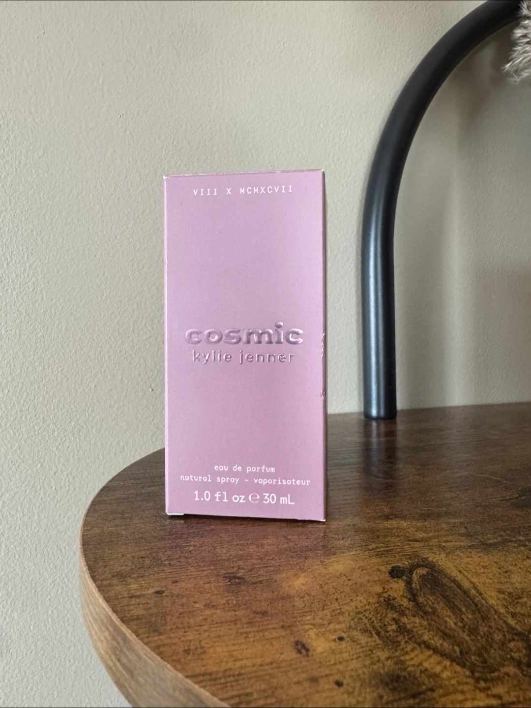 Selling a Kylie Jenner Cosmic Eau de Parfum. It's a natural spray in a 1.0 fl oz (30 mL) size. The fragrance features opening notes of star jasmine and blood orange, a heart of golden amber accord and red peony accord, and a base of vanilla musk accord and cedarwood. Comes with the original box!