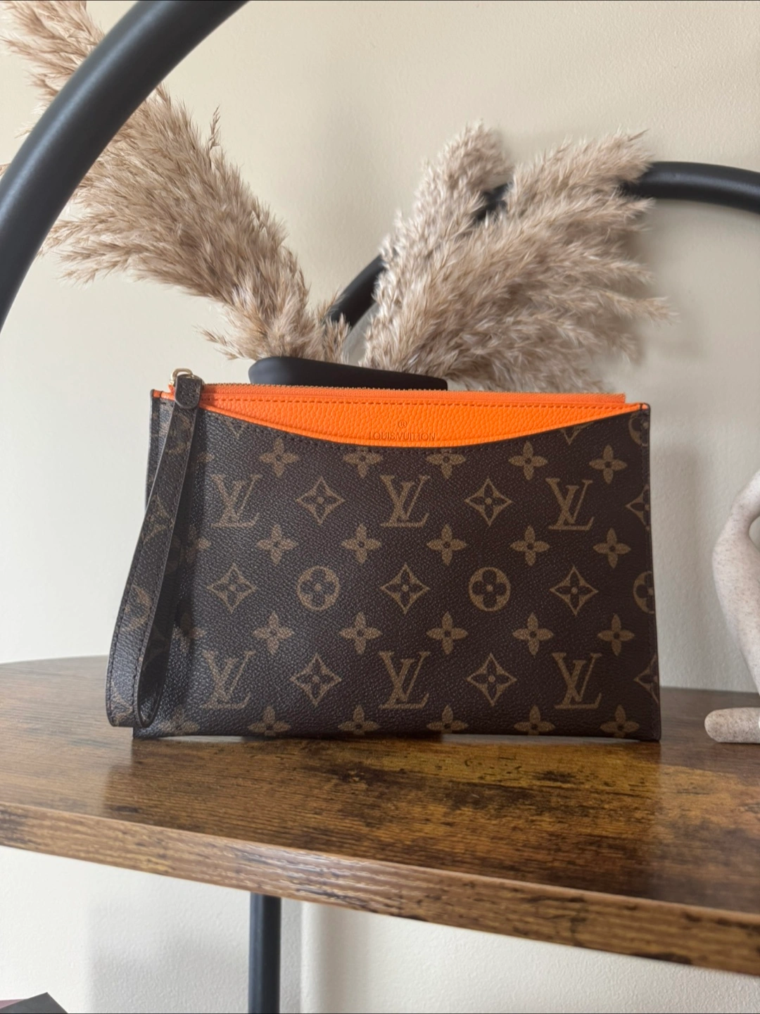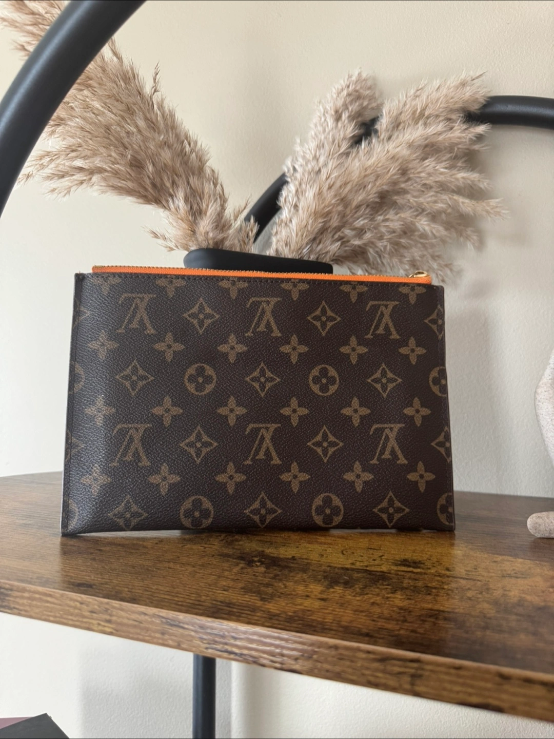 Selling a Louis Vuitton Toiletry Pouch 26! It's in great condition and features the classic LV monogram canvas with a vibrant orange interior. Perfect for organizing your essentials or using as a stylish clutch!