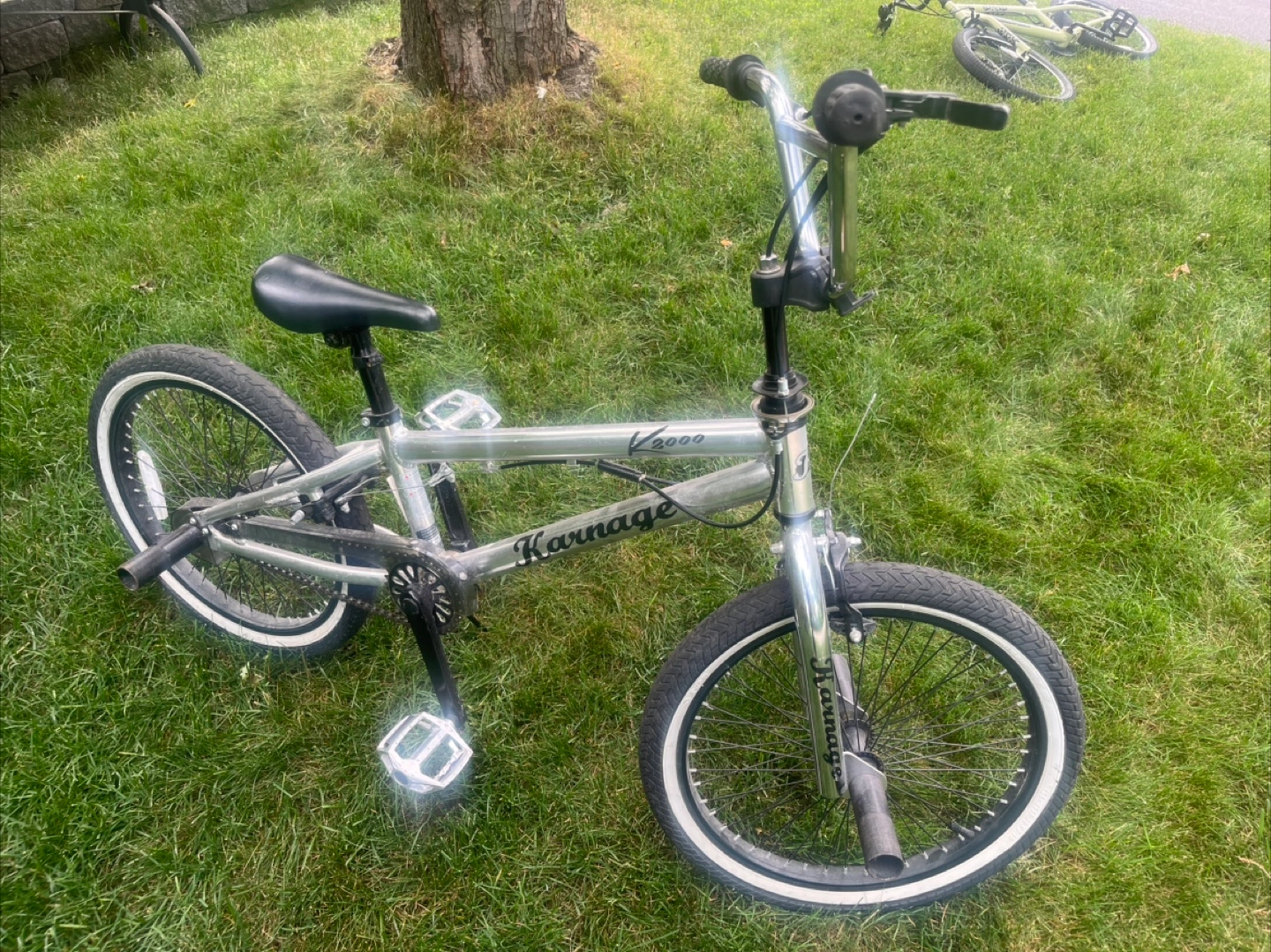 Selling a Karnage K2000 BMX bike in silver! It's in great shape and ready for some action. Perfect for anyone looking to try out BMX or upgrade their current ride. Let me know if you're interested!