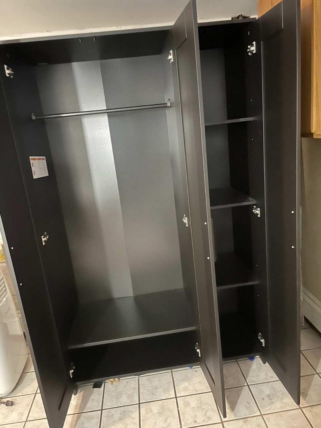 Selling a black Ikea PAX wardrobe! It's in great condition and ready to help organize your space. This wardrobe features a sleek design with ample storage, including shelves and a hanging rod. Perfect for any bedroom or closet!