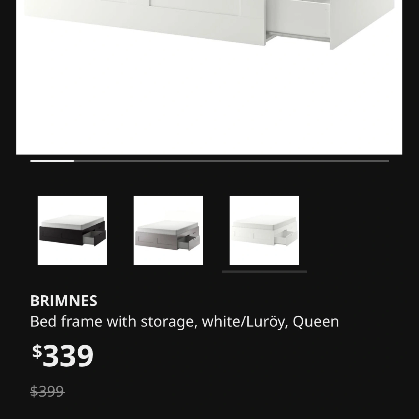 IKEA Brimnes Queen Bed frame with storage