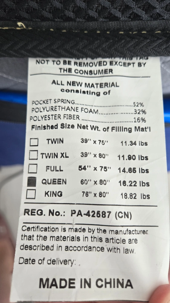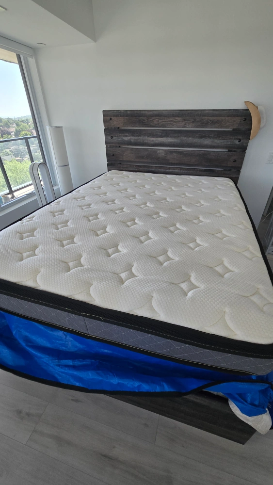 Selling a queen size Crystli 10 inch hybrid innerspring mattress + the blue plastic cover.
