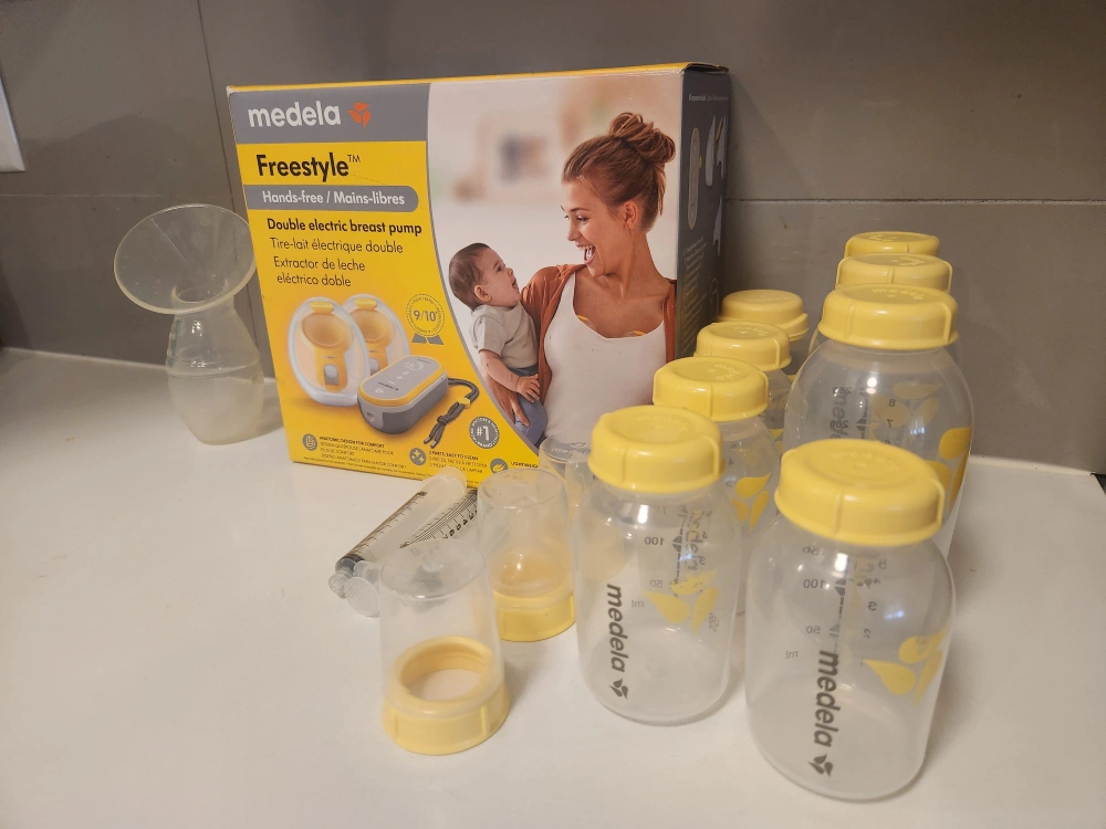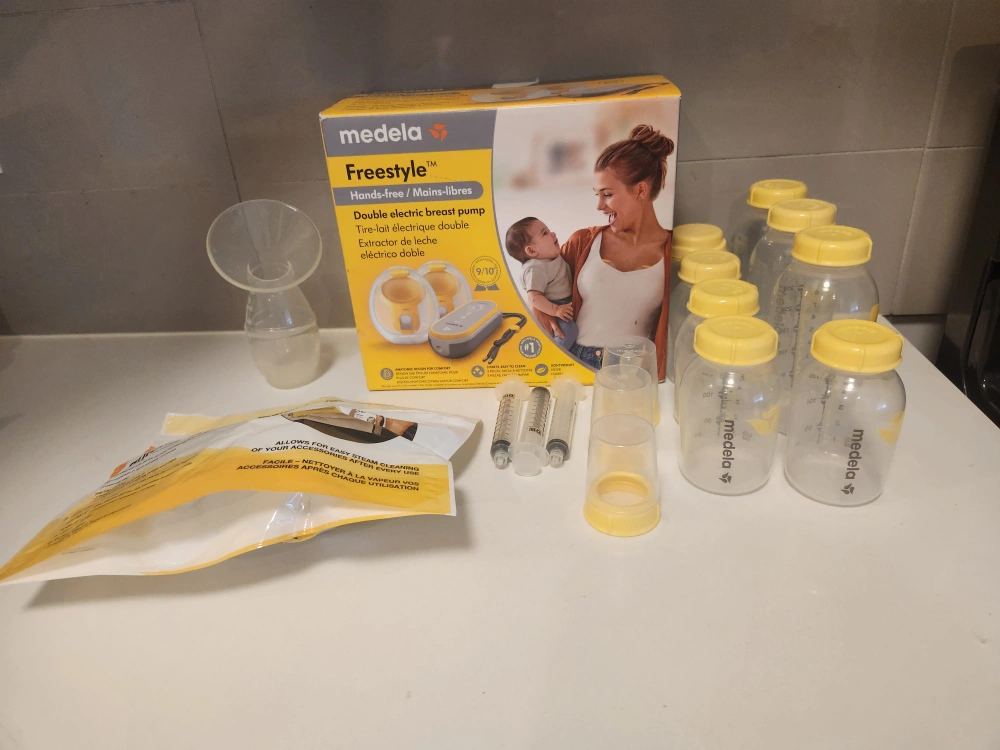 Medela Freestyle double electric breast pump. It's a hands-free, portable option that's great for busy moms.