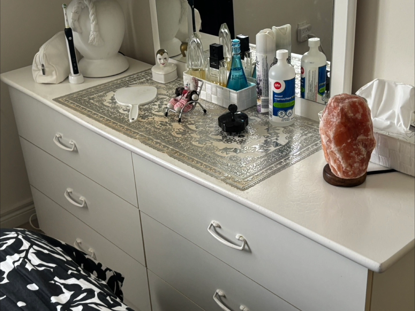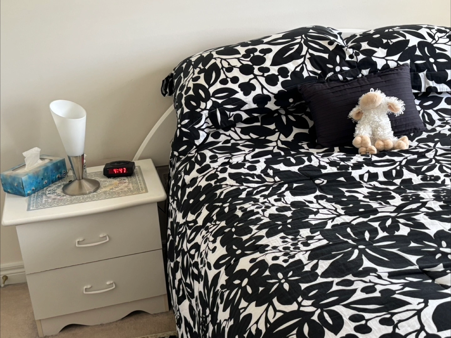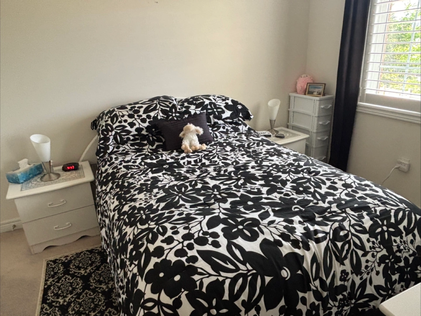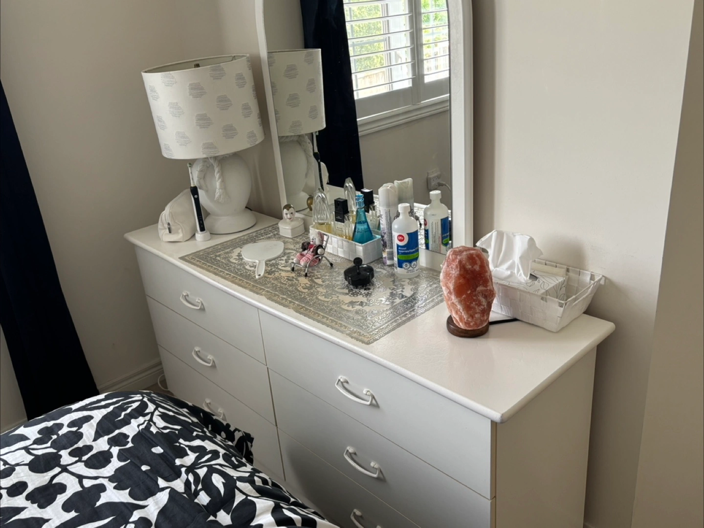 This used bed offers both comfort and style. also include included our two night tables and the dresser