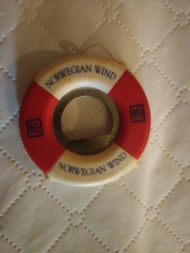 bottle opener shaped like a life preserver! It says "Norwegian Wind" on it, so it's perfect for anyone who loves cruises or nautical themes