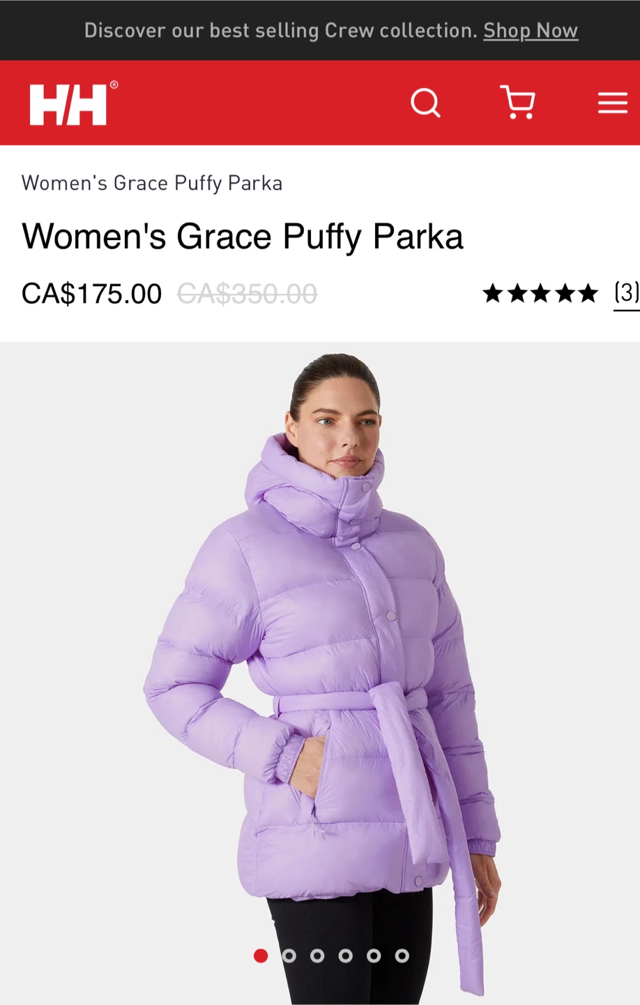 Selling a Helly Hansen Women's Grace Puffy Parka in a lovely lavender colour. This stylish and cozy parka is perfect for staying warm during the colder months. Retails (while on sale)for $175
