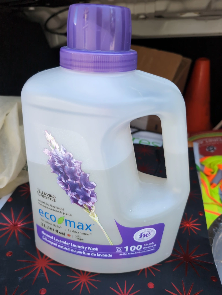Selling a bottle of Eco Max Natural Lavender Laundry Wash! It's a 3L bottle, perfect for getting lots of loads done. This laundry wash is powerful and plant-based, so it's a great choice for your family and the environment. It's 2/3 full and I currently can't use it because I seem to be allergic to the scent π