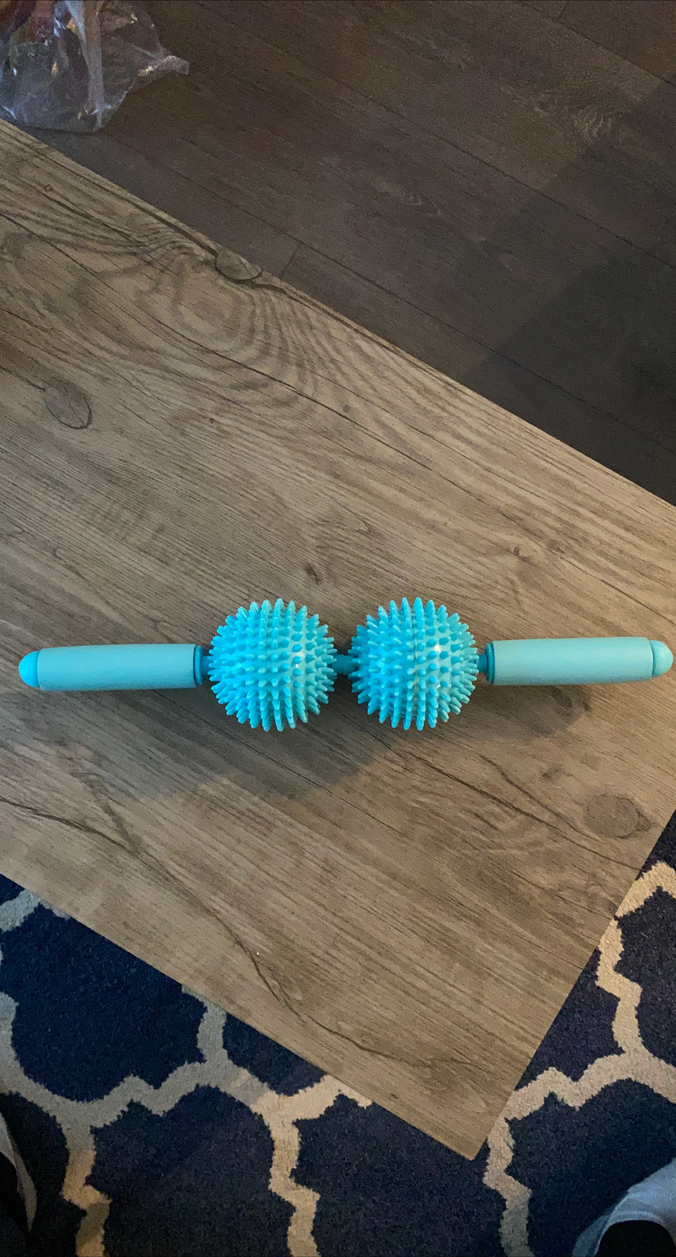 Here's a blue massage roller with spiky balls! It's in great condition and ready to help you work out those knots and sore muscles