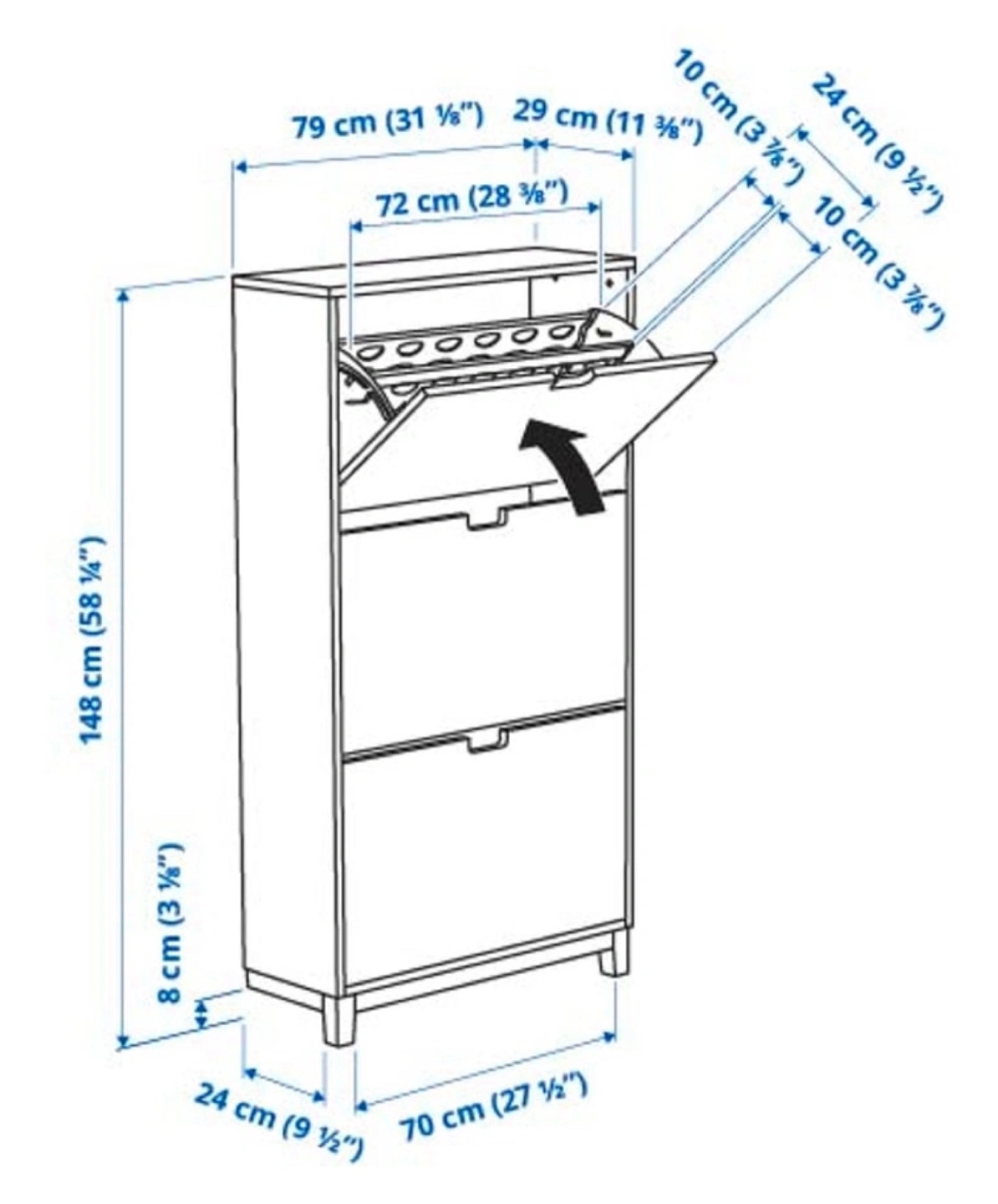 Received it today and just had it build by a task rabbit regretfully, it doesn’t fit in my space as well as I had hoped. It's in great shape and ready to organize your entryway. This cabinet helps you keep your shoes organized and frees up floor space. It measures approximately 31 1/8" wide, 58 1/4" high, and 9 1/2" deep