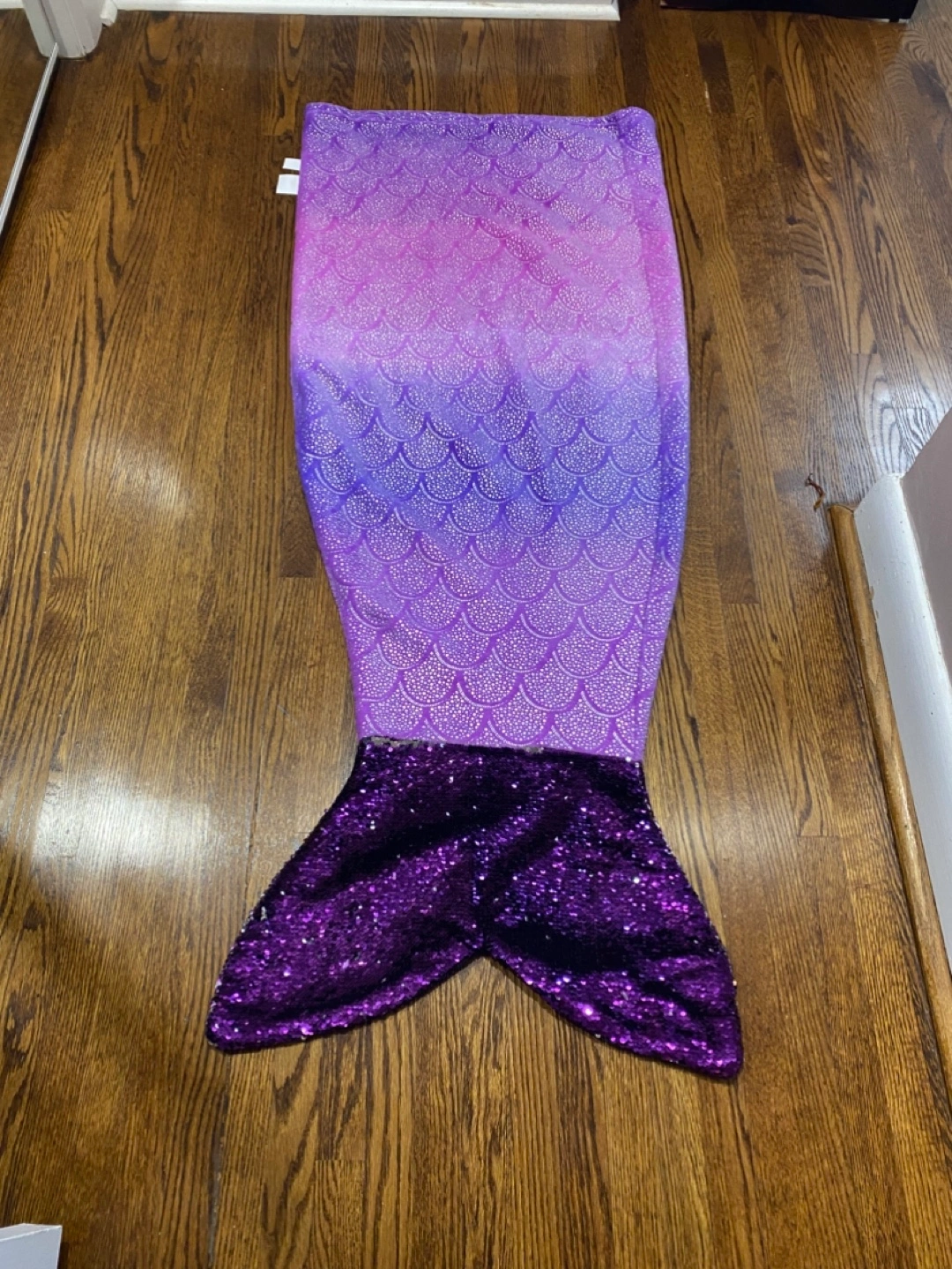 Selling a purple mermaid tail blanket! The fins are complete with sequence that flip from purple to silver. It's in great condition and would be perfect for a cozy night in or a fun dress-up occasion. Please refer to pictures for more details.