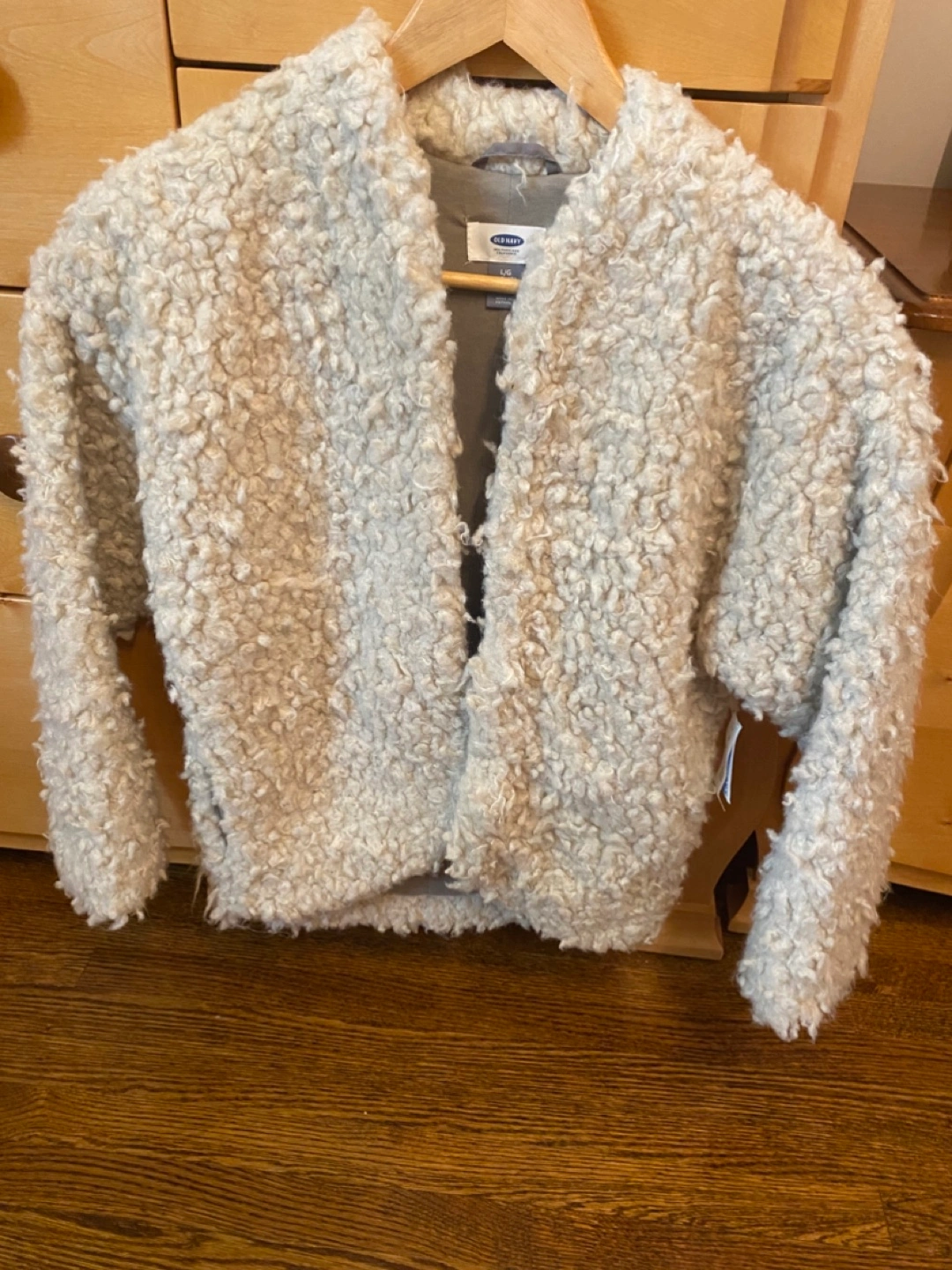 386Cozy up with this Old Navy sherpa jacket! It's brand new with tags still attached in a cream colour and size L (10-12). Perfect for keeping warm on chilly days! Comes from a clean, smoke free and pet free home. Must be able to pick up. Location is around 401 and Allen rd. Practicing contactless porch pick up. Asking $10