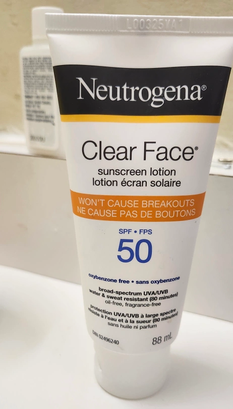 Selling a tube of Neutrogena Clear Face sunscreen lotion with SPF 50. It's oxybenzone-free and provides broad-spectrum UVA/UVB protection. It's also water and sweat resistant for up to 80 minutes, and is oil and fragrance-free. Perfect for daily use!