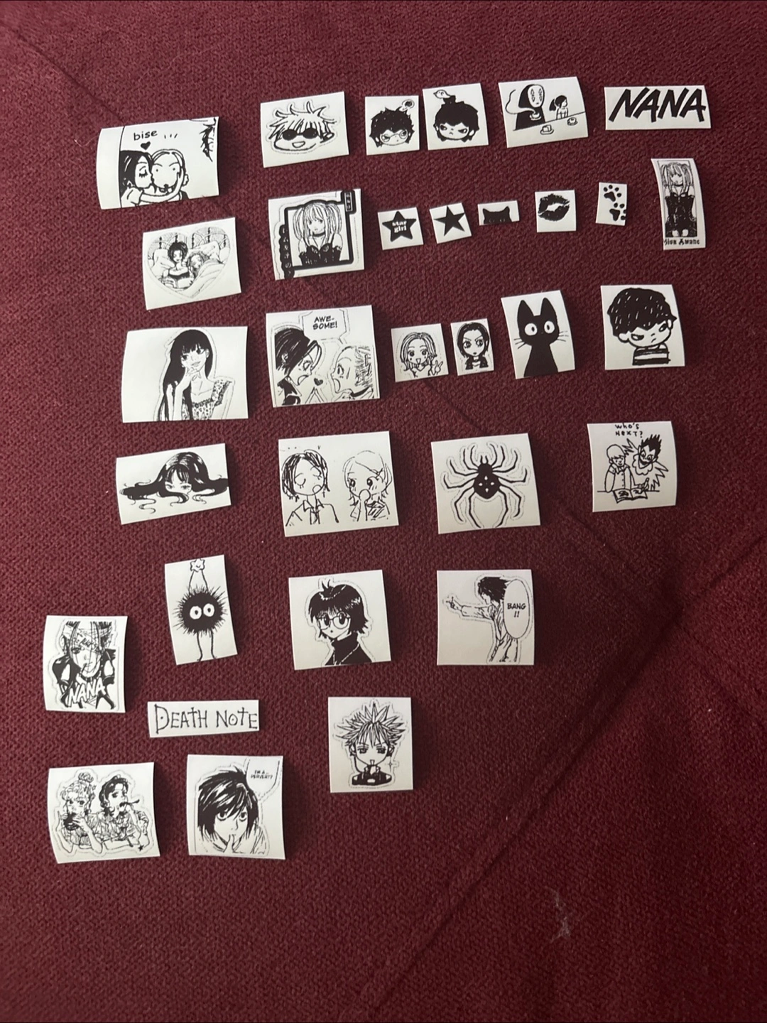 Selling a collection of cute anime stickers! Featuring characters and logos from Nana, Death Note, Hunter x Hunter, and more 1$ 3 pieces