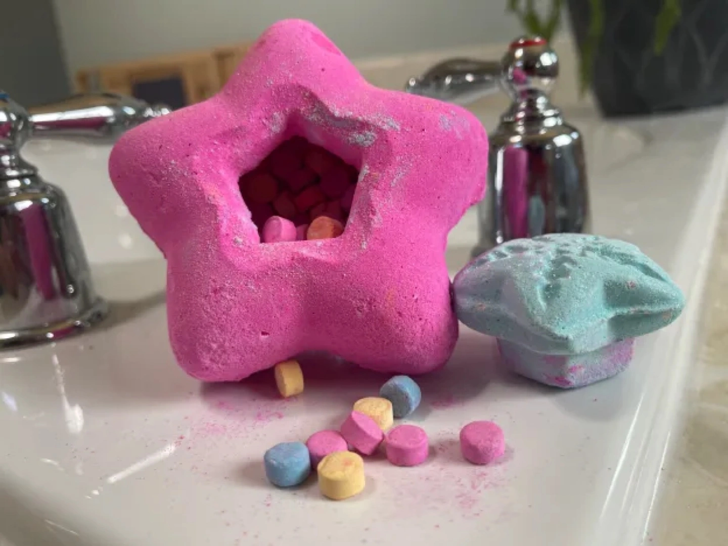 Selling a Lush Star Light Star Bright bath melt! It's a pink star with a smaller blue star on top. Perfect for a relaxing bath