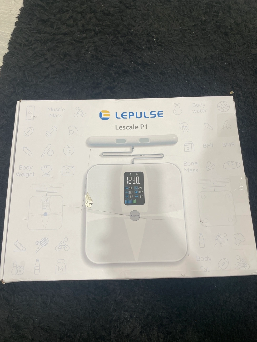98Selling a brand new LEPULSE Lescale P1 body composition scale! It measures body weight, muscle mass, body water, BMI, BMR, bone mass, and body fat. It's still in its original box!