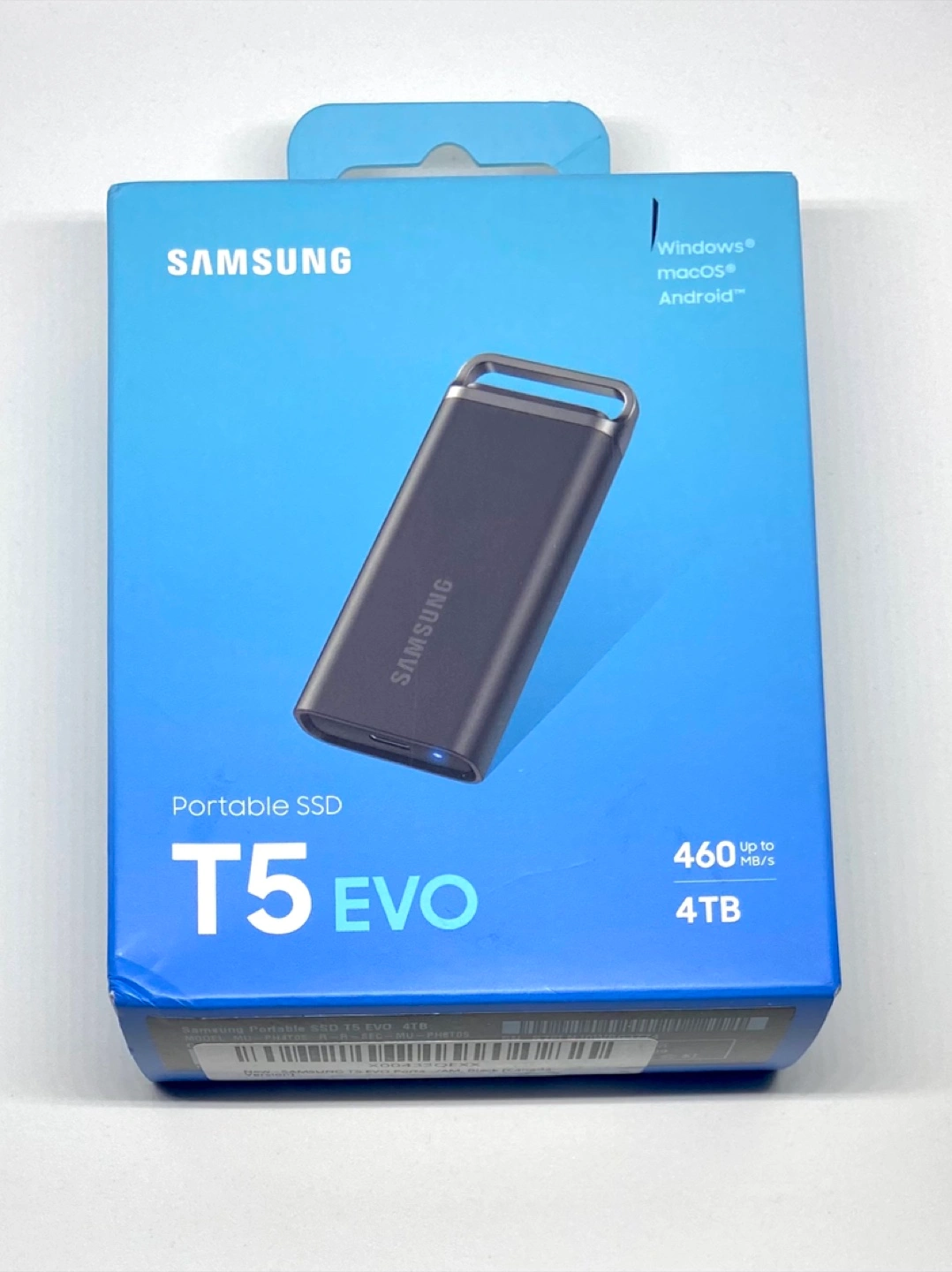 *** Brand NEW and SEALED *** Selling a Brand New Samsung Portable SSD T5 EVO with a spacious 4TB capacity! It boasts up to 460MB/s read and write speeds, supported by USB 3.2 Gen1(10Gbps). Its sleek and solid design is ergonomically designed for an easy grip and features drop resistance strengthened for falls of up to 2 meters. Compatible with PCs, phones, and other devices. Retails for over $347++ Priced accordingly and fair. Local pickup and cash only. Lowballers will be reported. Ref: SSD, Solid state drive, Hard drive, Portable SSD, Portable HDD, Samsung Drive, PC, Mac, Macintosh, Apple, Secondary, Backup Drive, Portable drive, Game Drive.