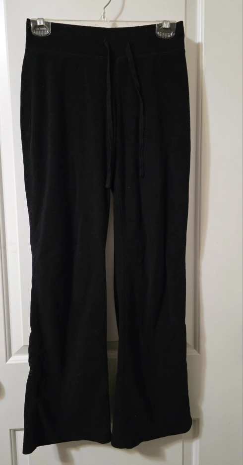48Comfy black lounge pants with a drawstring waist! These are perfect for relaxing at home or running errands. The material is soft and stretchy. They're in great condition and ready for a new home!