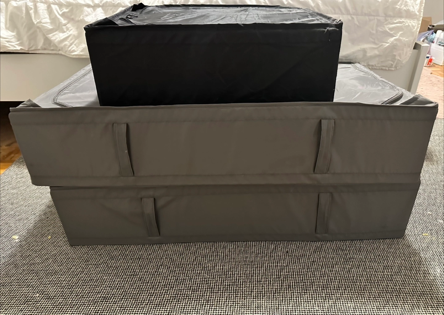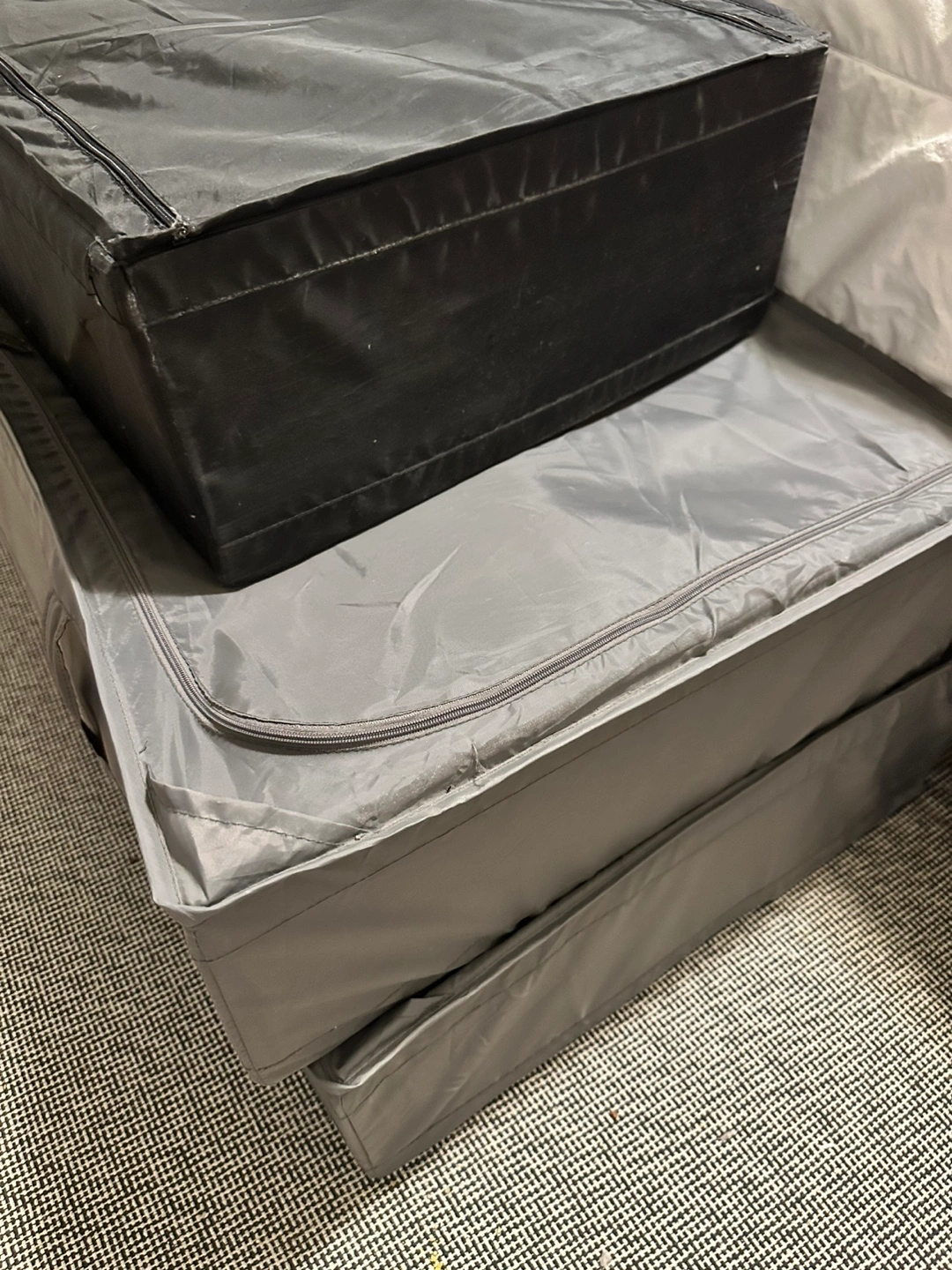 Selling these handy under-bed storage bags! They're great for keeping extra linens, clothes, or anything else you want to tuck away neatly. The set includes both grey and black bags, perfect for organizing your space. Get organized today!