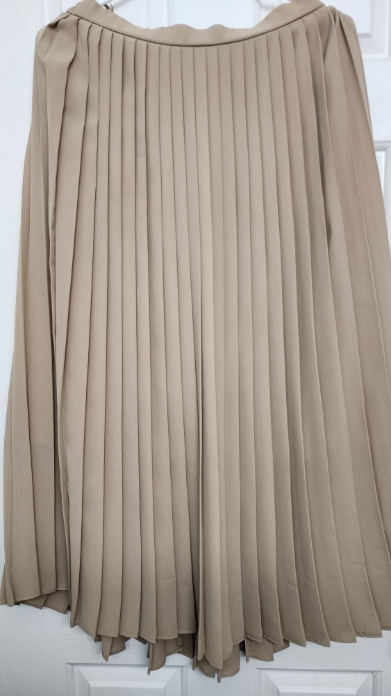 This tan/beige maxi skirt from Uniqlo features a graceful A-line silhouette with pleats that add a touch of elegance. Perfect for casual or resort wear, its lightweight fabric ensures comfort and style throughout the day.