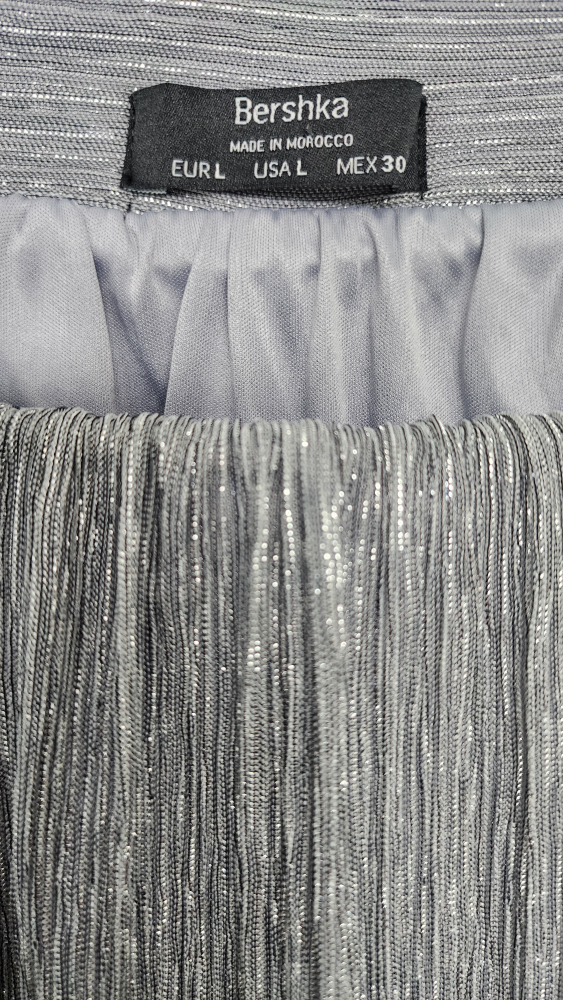 Elevate your evening look with this stunning silver maxi skirt from Bershka. Featuring a chic A-line silhouette and elegant pleats, it's perfect for cocktail parties or a night out. The shimmering fabric adds a touch of glamour, making it a standout piece in any wardrobe.