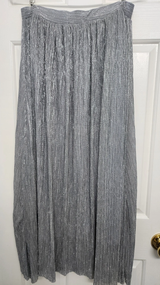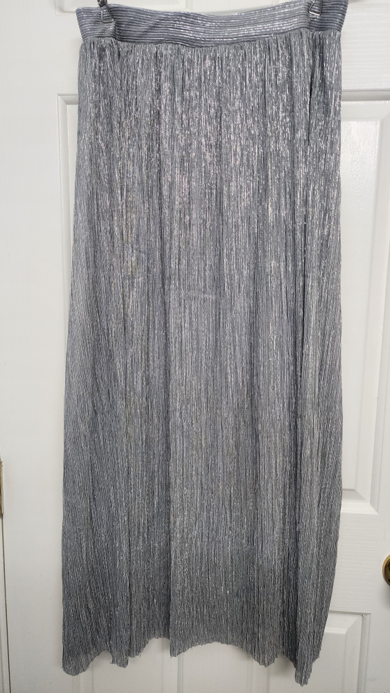 Bershka Silver Maxi Pleated A-Line Skirt