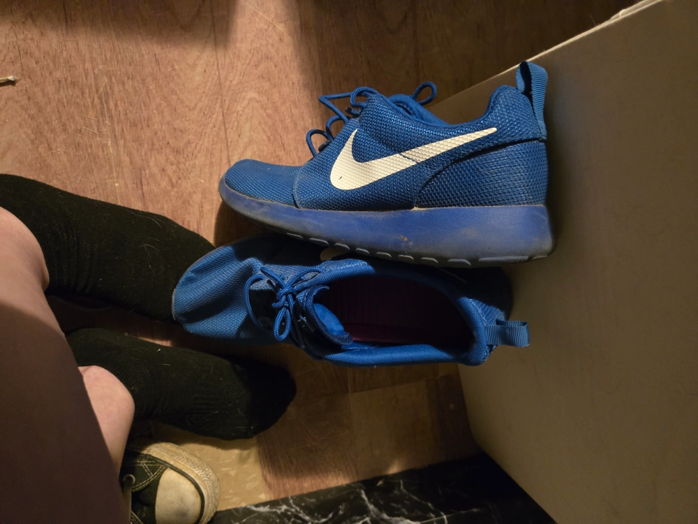 Selling a pair of blue Nike Roshe Run sneakers. They're in good condition and ready for a new home! pick up only please