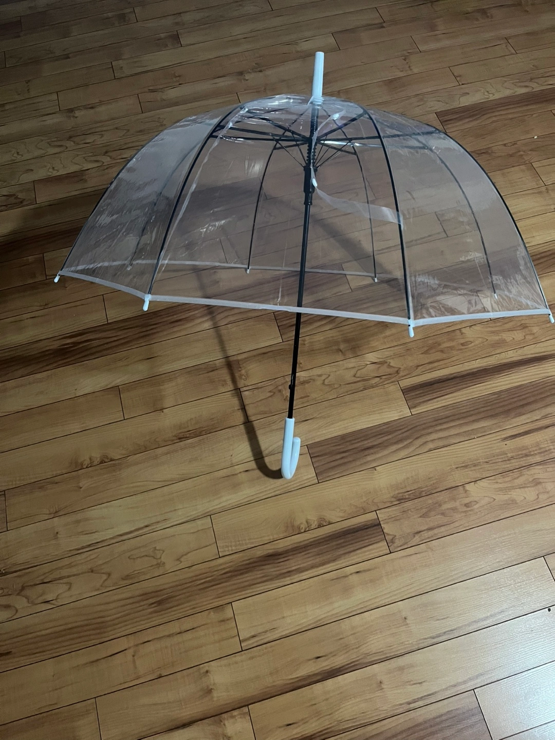 Selling a clear bubble umbrella! It's in great condition and perfect for rainy days. Keeps you dry while still letting you see everything around you