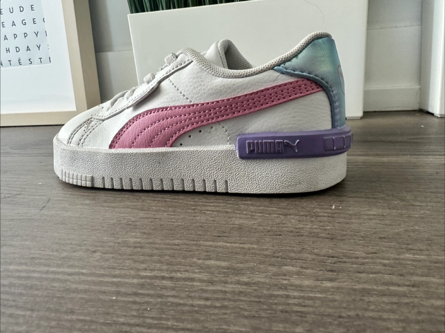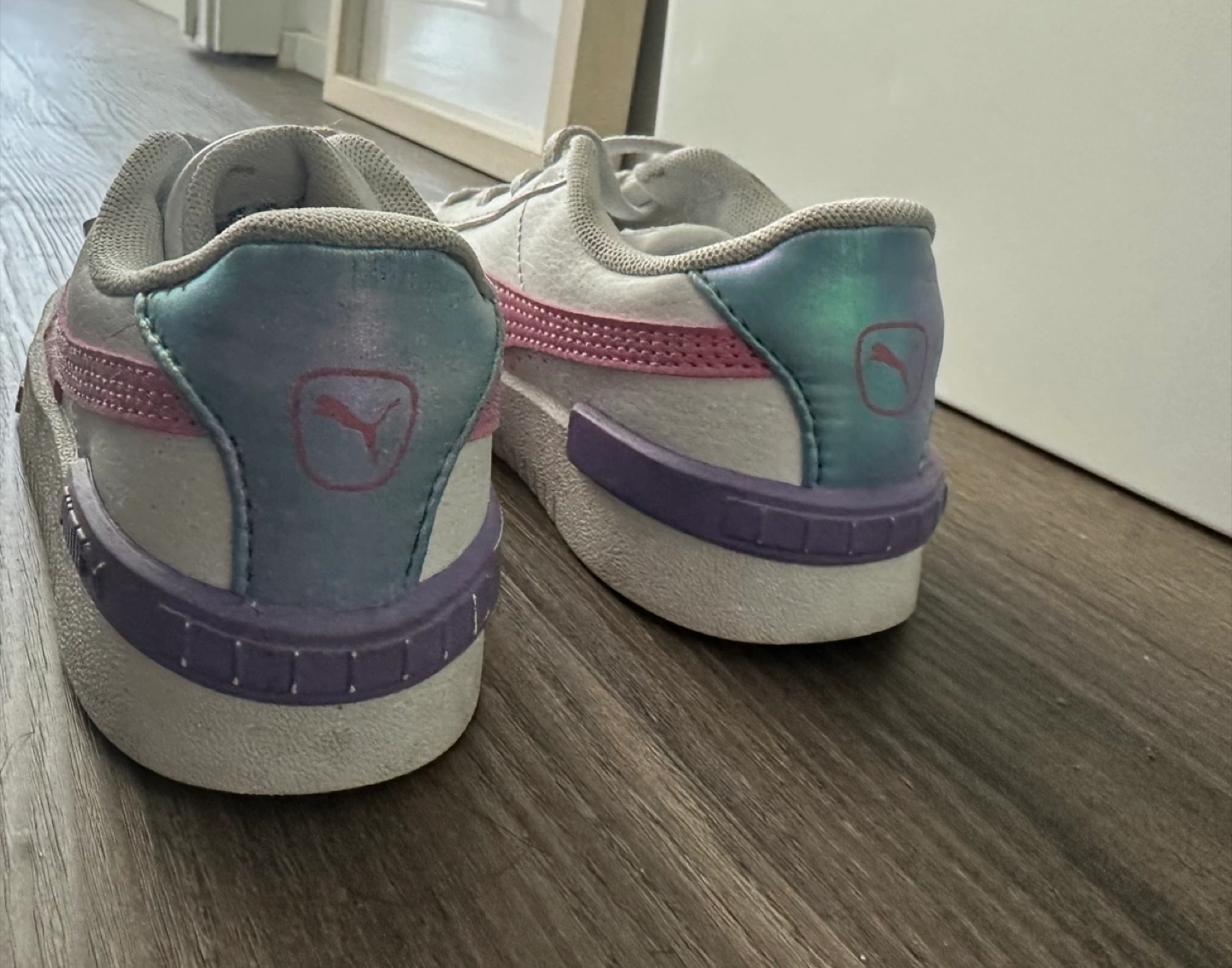 Worn once - Cute Puma Court Platform shoes in a size 6! These are in great shape and ready for a new home. The white leather with pink and purple accents make them super stylish and versatile. Perfect for adding a little lift to your everyday look!