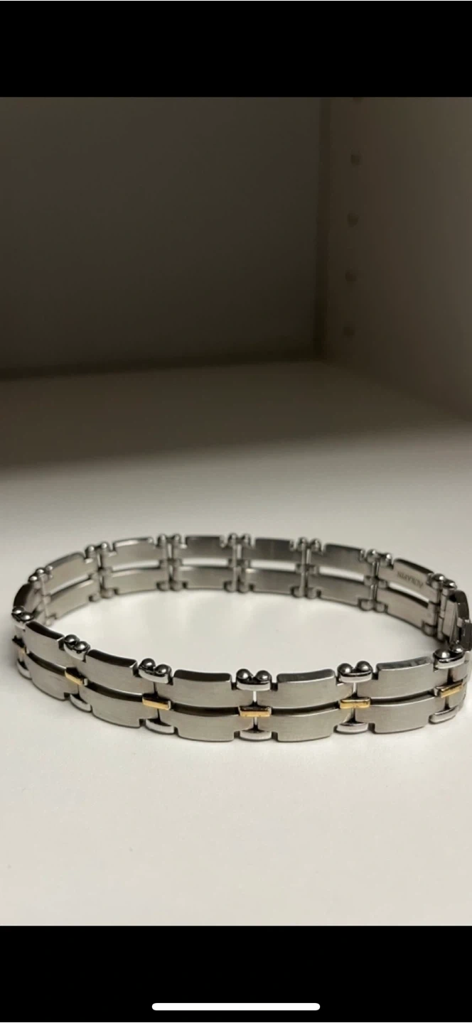 Mens stainless steel link bracelet. Made in Italy. Silver and 18k gold links. Cash only Bathurst And Steeles Pick up