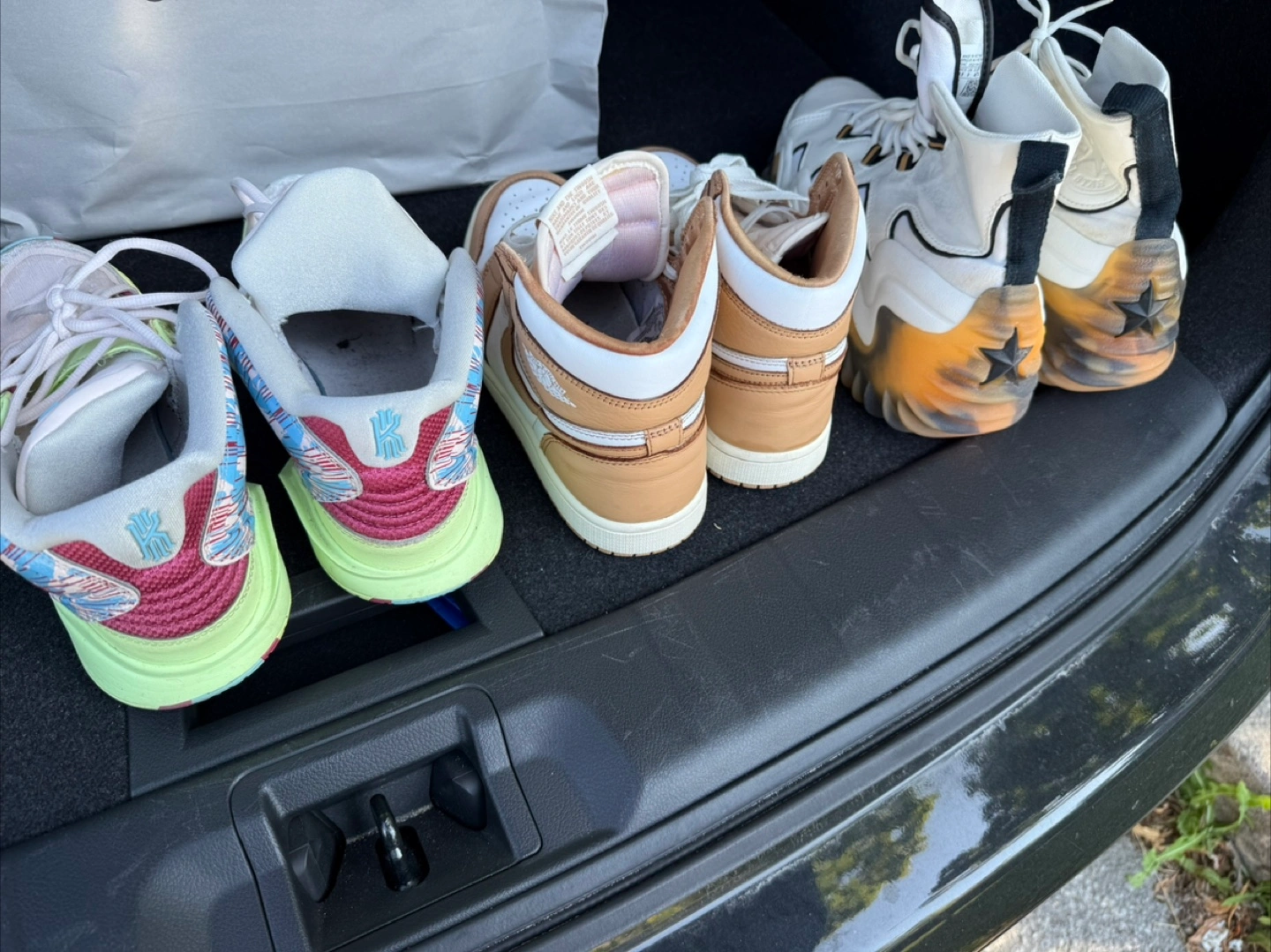 Selling a pair of Nike Air Jordan 1 and Converse Chuck Taylor shoes, Nike KYRIE. All are in good condition, as shown in the photos. Sizes are in the barcode, SCAN code for authenticity. Message me for a video.