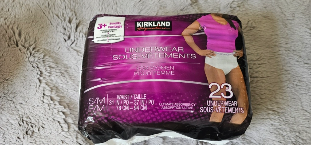 1000+Selling a pack of Kirkland Signature Underwear for Women in size S/M. The waist size is 31-37 inches (78-94 cm). There are 23 pairs of underwear in the pack. Ultimate absorbency and breathable!