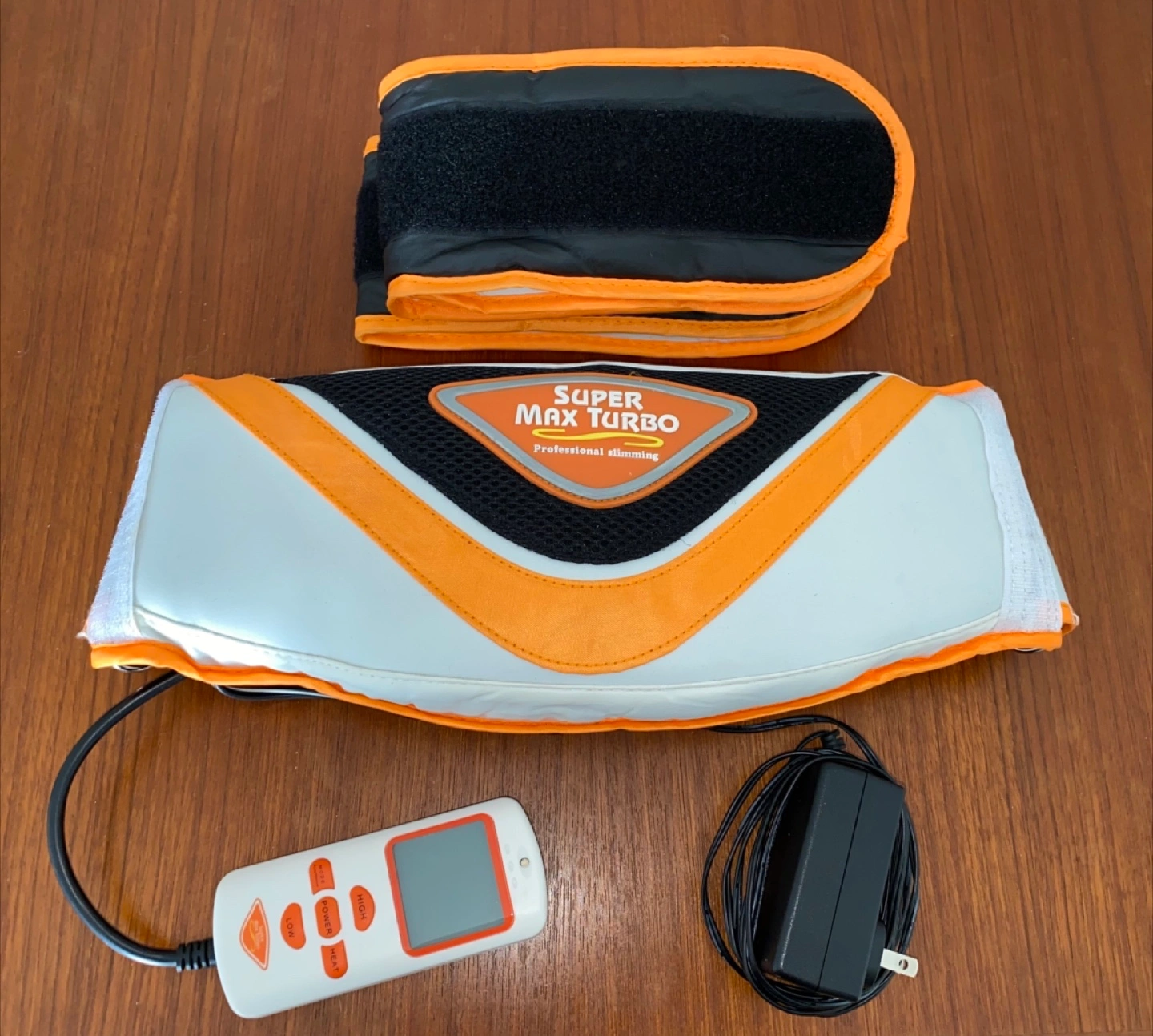 Selling a Super Max Turbo professional slimming belt! It comes with the belt, remote, and charger. The original box is included as well. This powerful slimming belt is perfect for anyone looking to enhance their fitness routine!