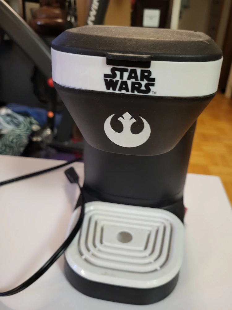 I'm selling a Star Wars themed single cup coffee maker! It's in great condition and perfect for any Star Wars fan who loves coffee