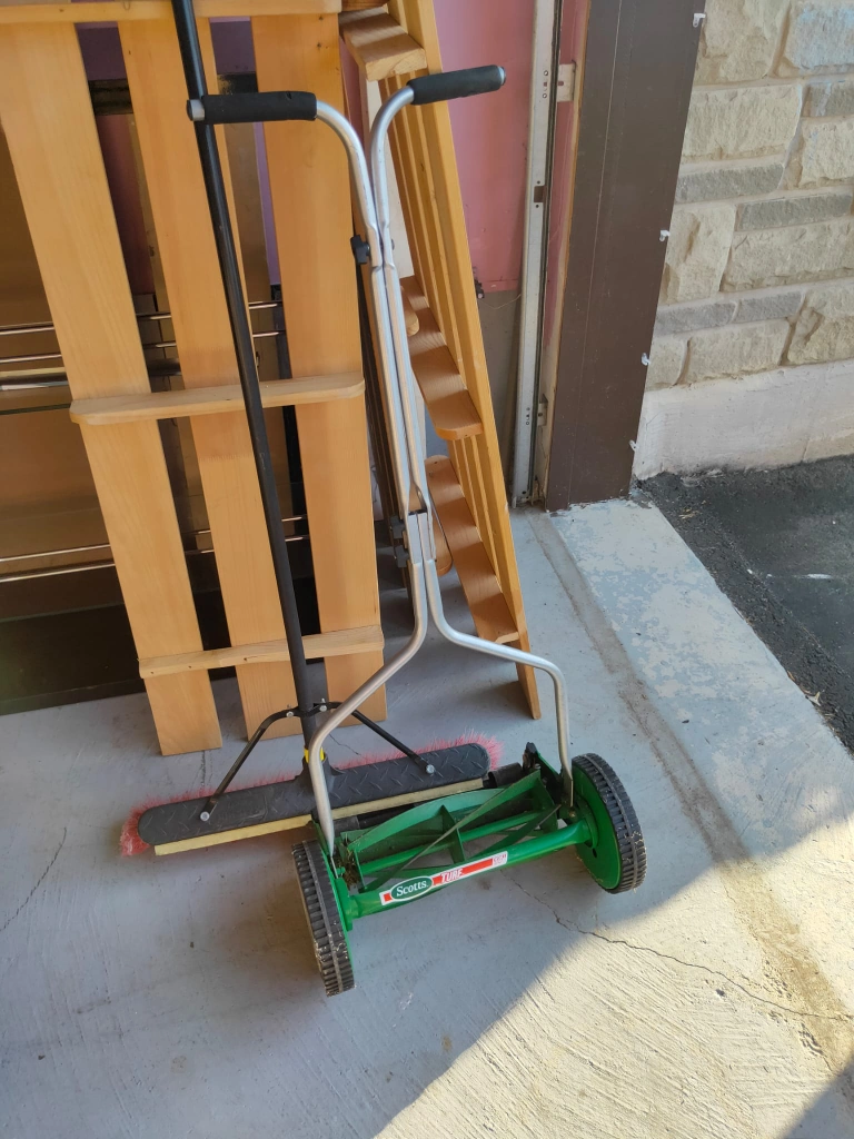A 14-inch scotts turf reel lawn mower, great for small yards and getting some exercise! it's like new, hardly used, and ready to go! (Price negotiable).