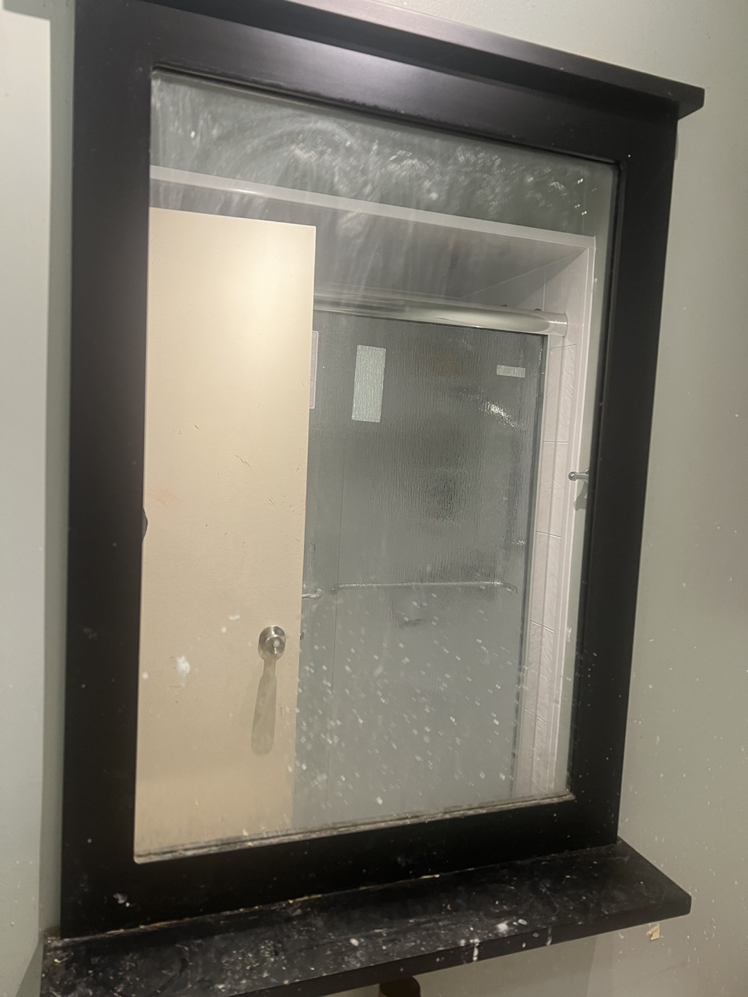 Selling a mirror cabinet with a sleek brown frame. It's in good condition and perfect for adding storage to your bathroom or any room in your home
