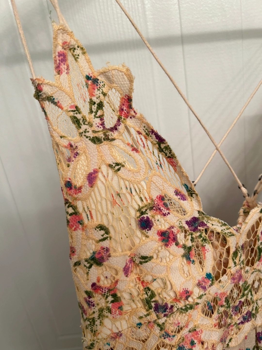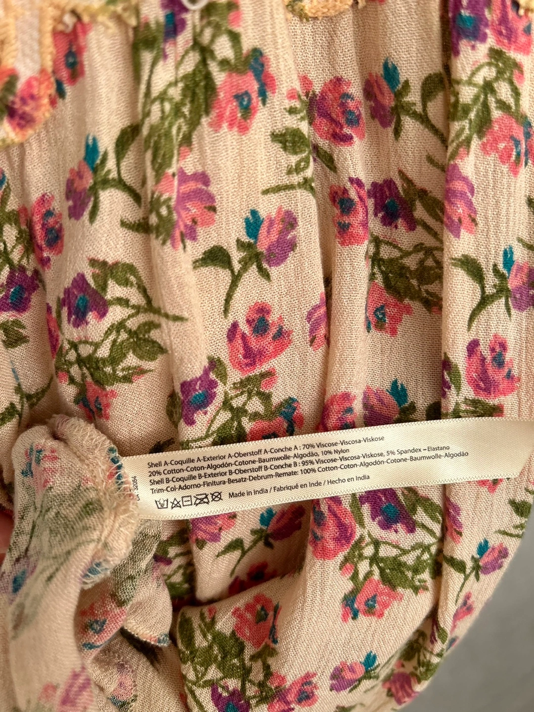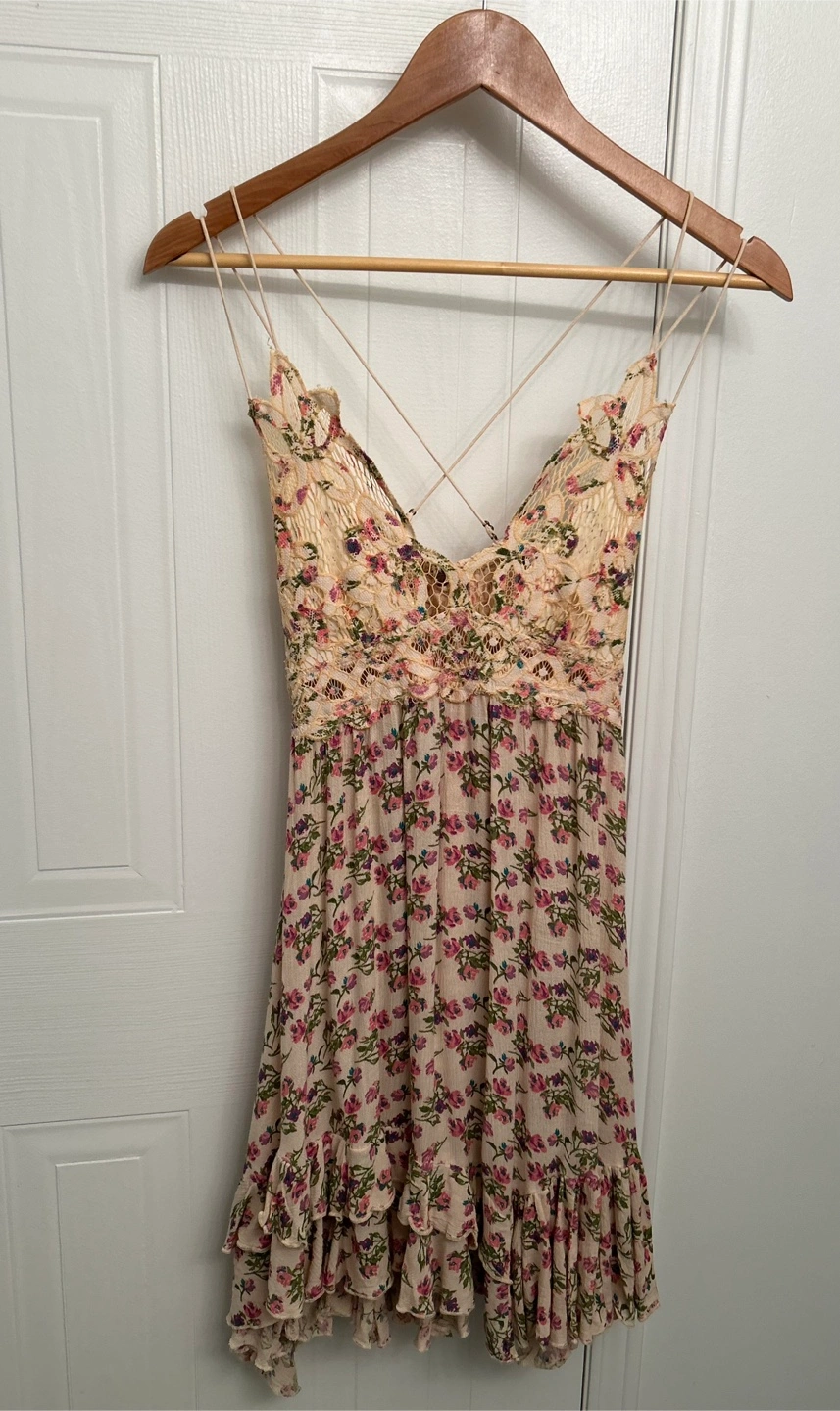 Flowy floral mini dress in size XS. It features a beautiful floral pattern. The dress is made of 70% Viscose, 25% Cotton, and 5% Spandex. Perfect for a summer day! Bought for about $120, wore 2 times, not my style