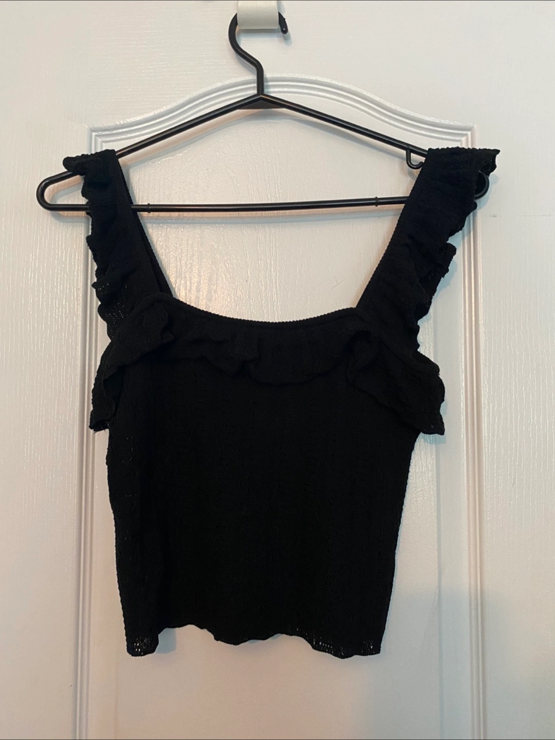 Cute Zara black tank top with ruffle straps. It's a size small and in great condition! Perfect for summer