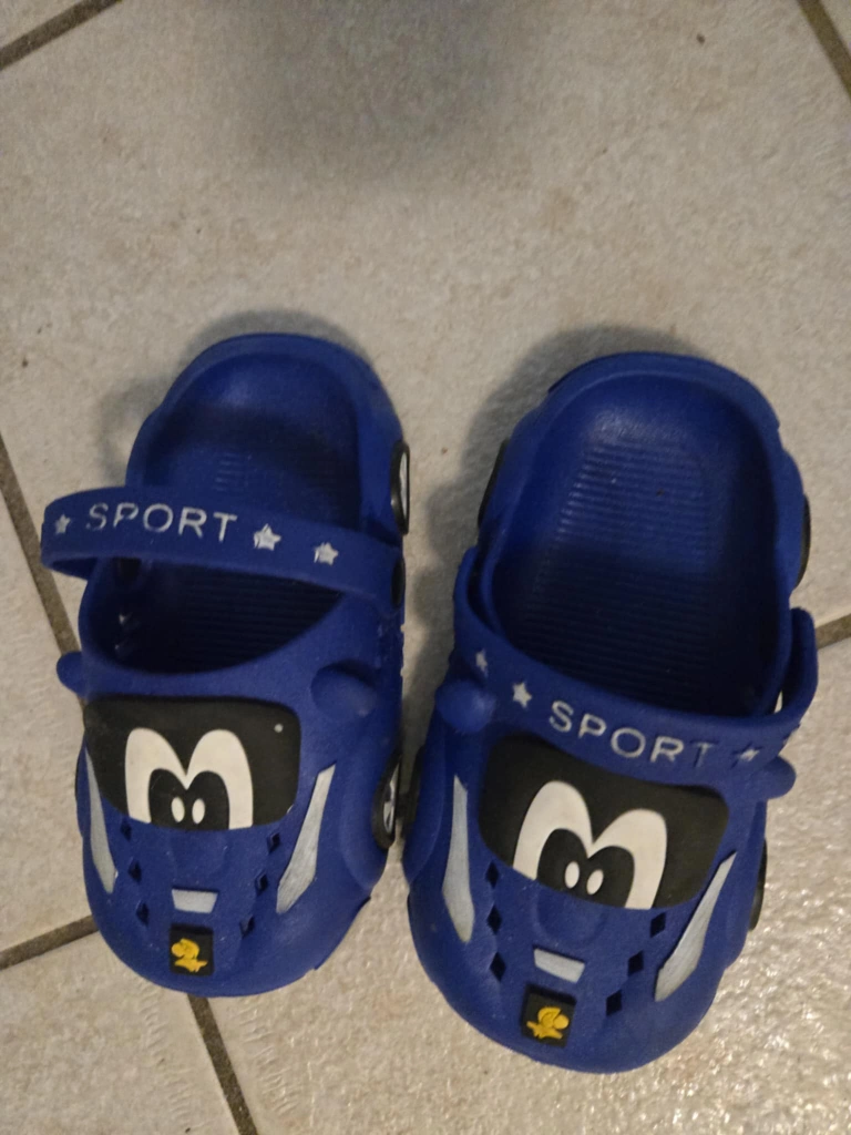 Cute blue cartoon clogs for your little one! They feature a fun design and are perfect for everyday wear. In good condition!