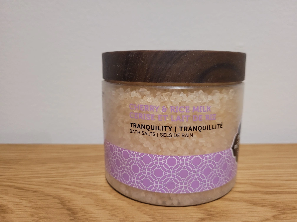 Selling a jar of Cherry & Rice Milk Tranquility bath salts. Never opened still has the seal on it. I don't have a bathtub.