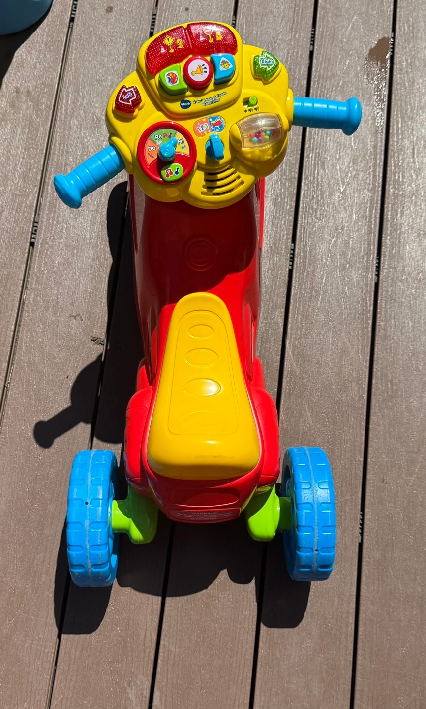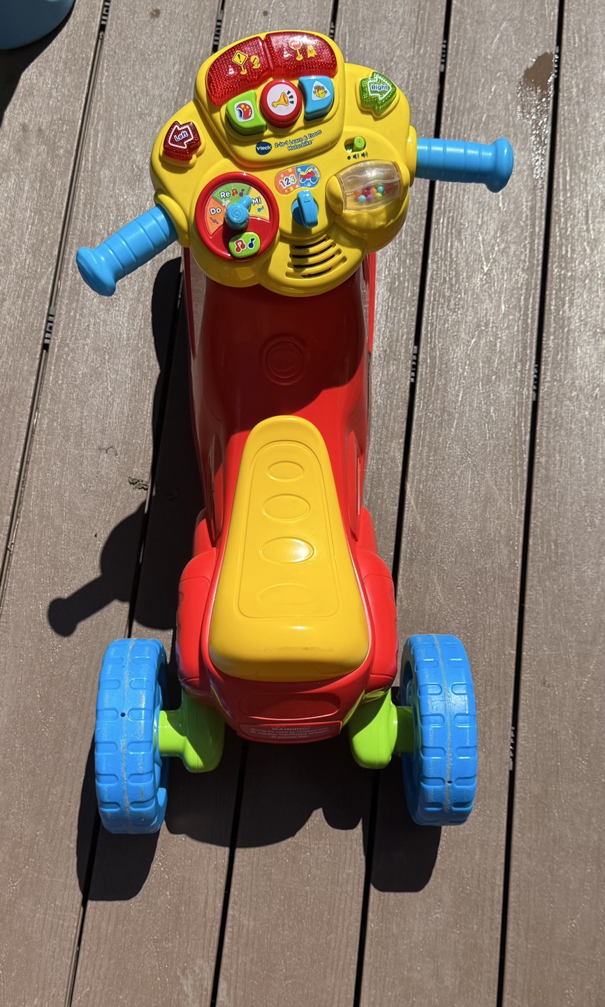 Selling a VTech Sit-to-Stand Smart Cruiser! It's in great condition and ready for a new home. This fun toy helps your little one learn and grow as they transition from sitting to standing and cruising around. Perfect for developing motor skills and keeping them entertained!
