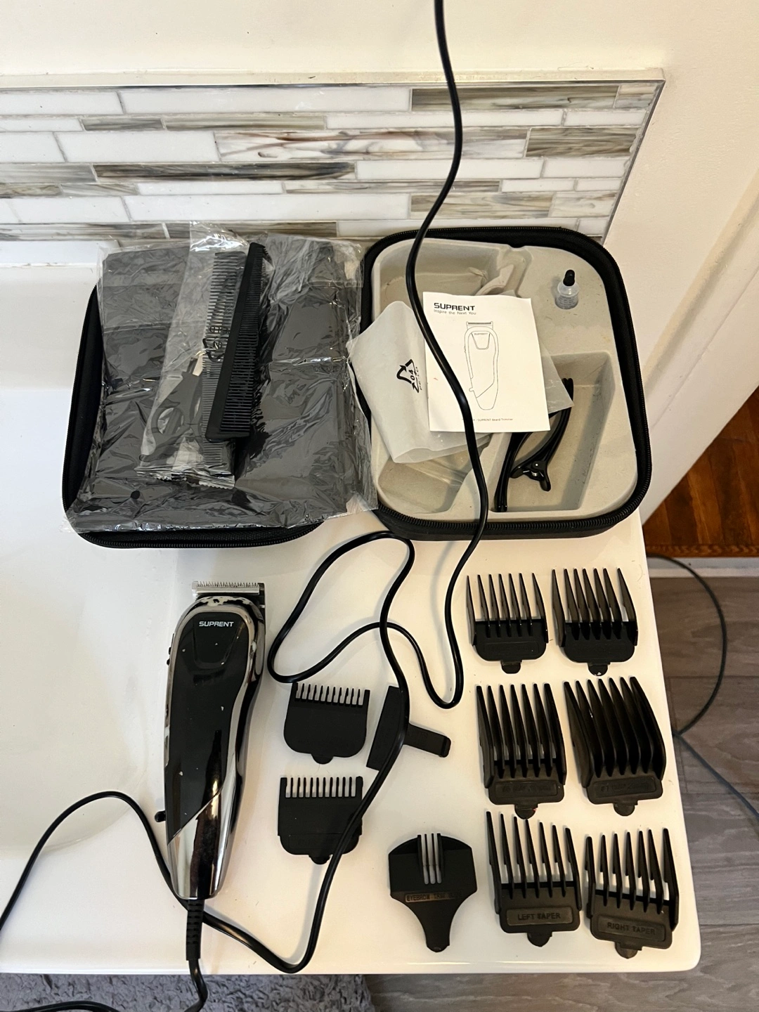 Selling a Suprent hair clipper set. It comes with a variety of attachments and is in great condition. Includes the carrying case for easy storage and portability
