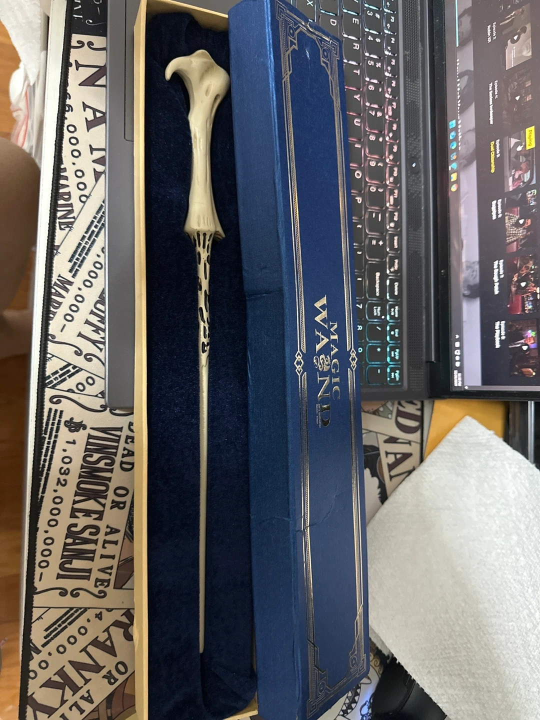 Selling a magic wand that comes in its original box which is little bendy. Wand is in great condition and ready for a new wizard or witch. Just Wand. No special effects.