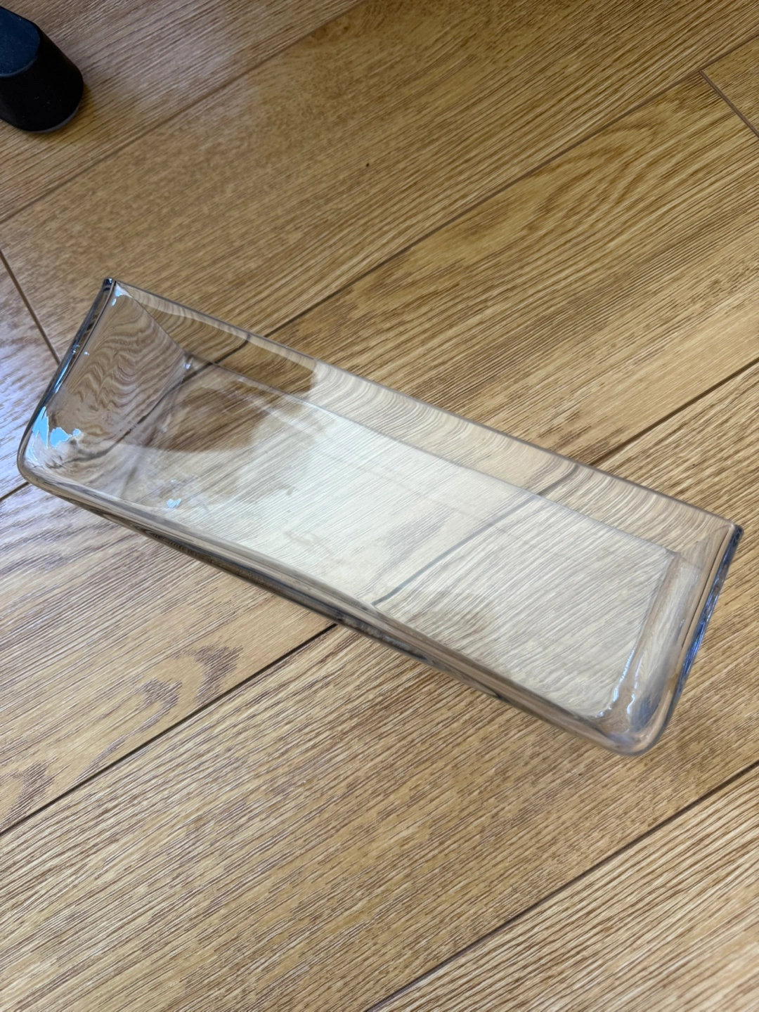 Selling a clear rectangular glass vase! It's in great condition and perfect for displaying flowers or as a decorative piece in your home. It can be even used for potpourri.
