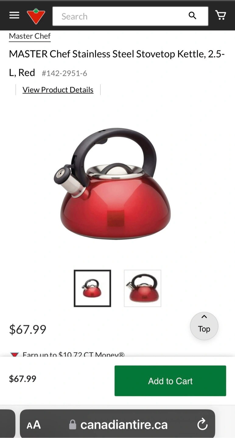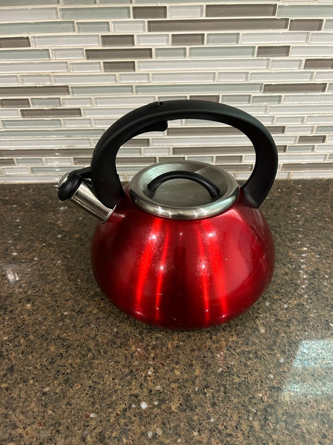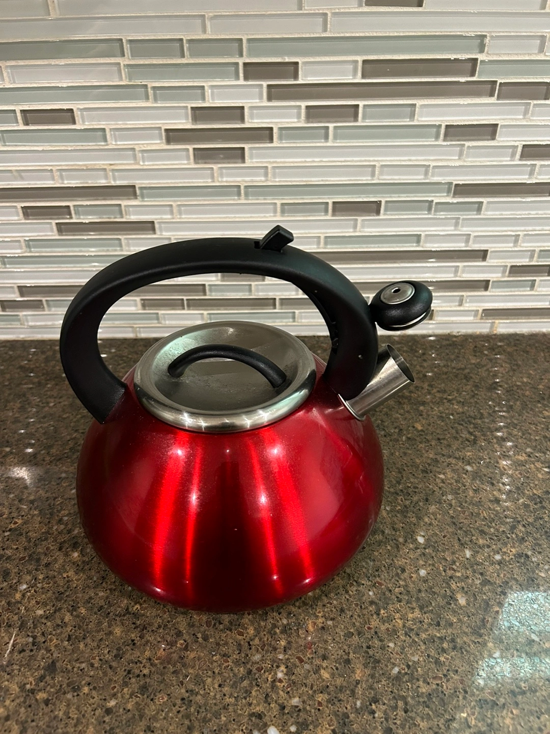 Selling a Master Chef stainless steel stovetop kettle in red! It's a 2.5L kettle, perfect for making tea or coffee. It was originally bought for $67.99 plus tax.