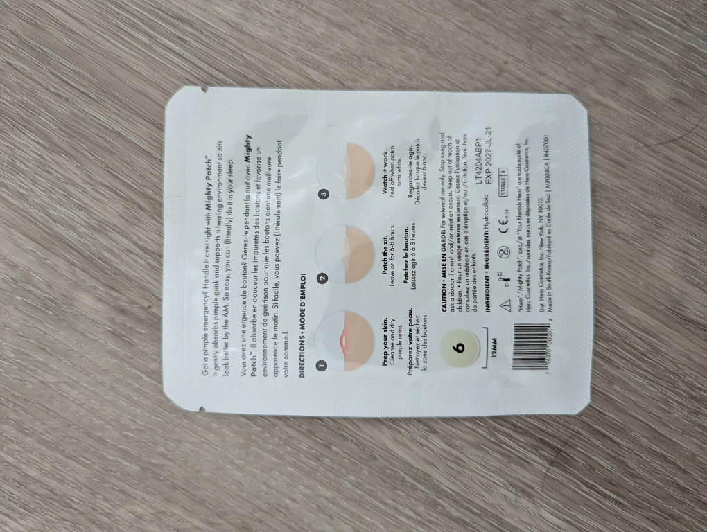 Selling a 6-pack of Mighty Patch Original blemish patches! These hydrocolloid patches gently absorb pimple gunk and support healing in 6-8 hours. They're drug-free and dermatologist-reviewed. Expiry Date: 2027 July 21