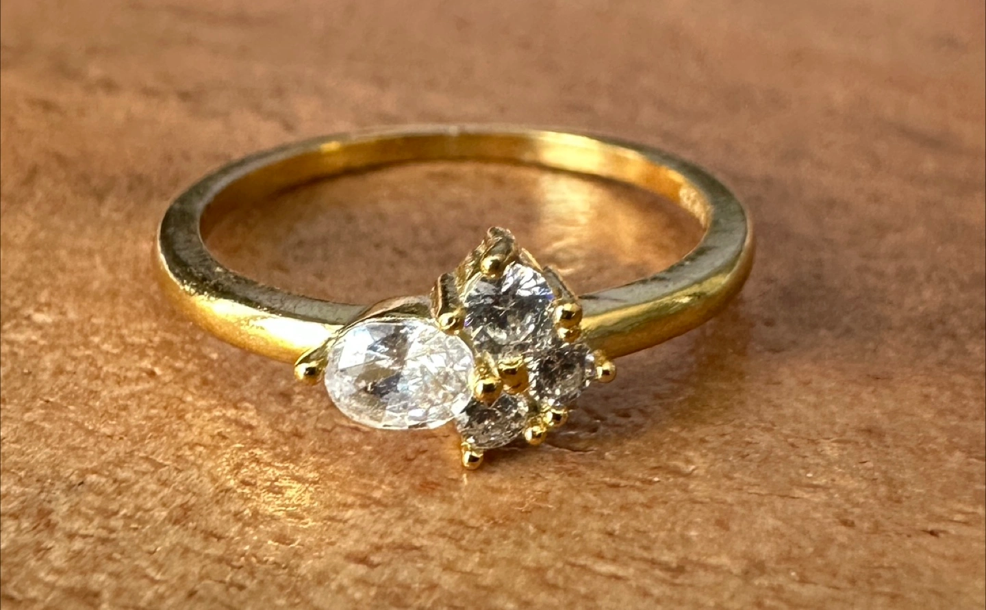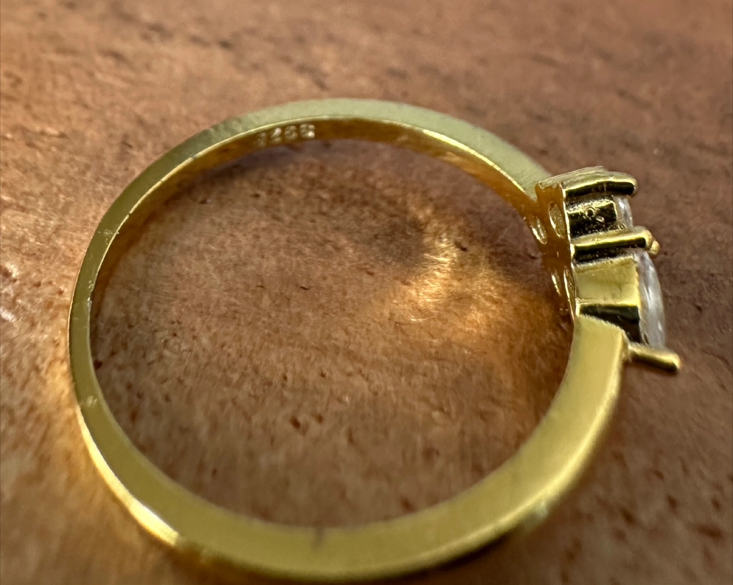 Selling a beautiful gold plated ring featuring cubic zirconia stones. New - never worn Size 6 Fastest pick up