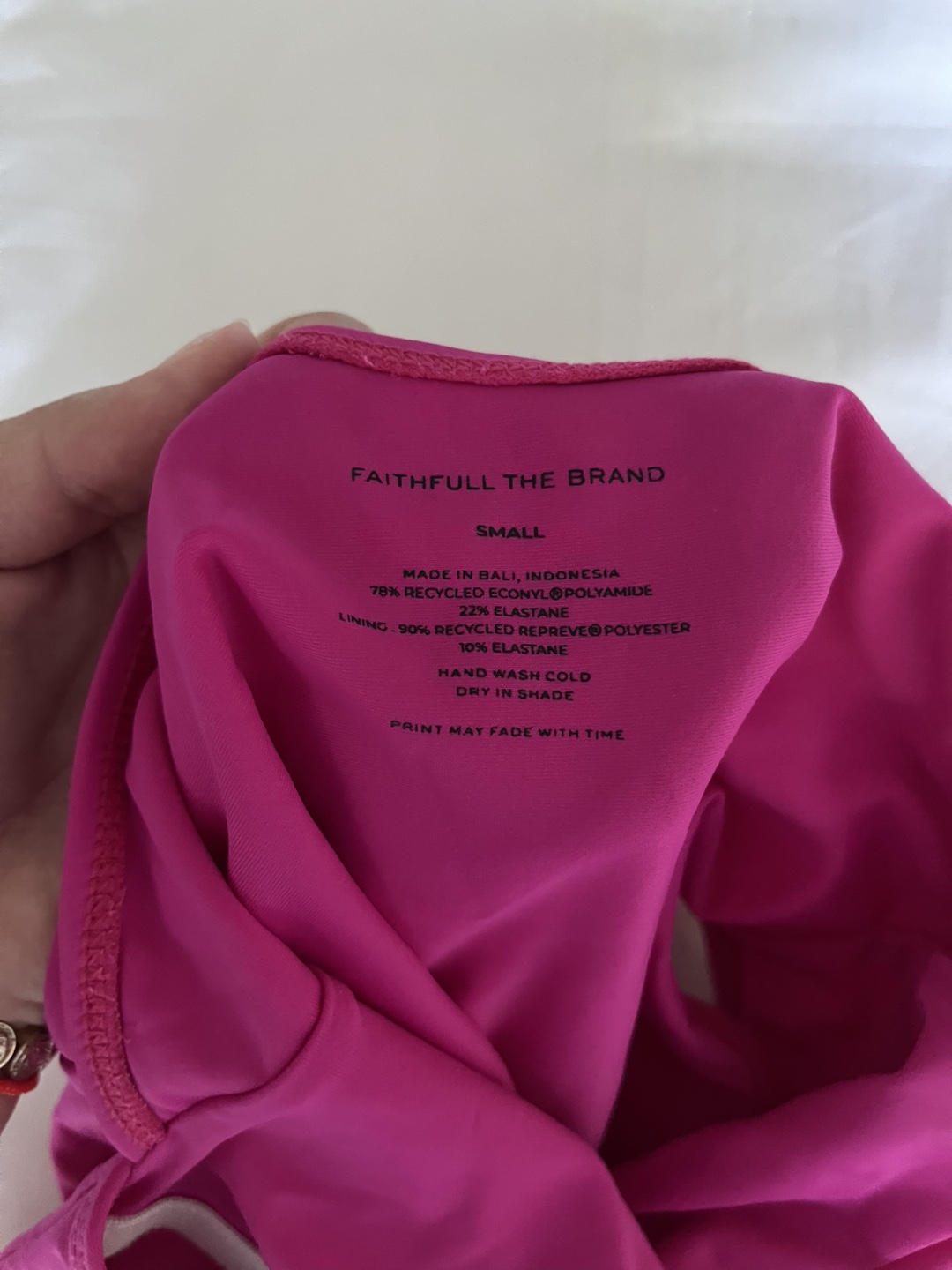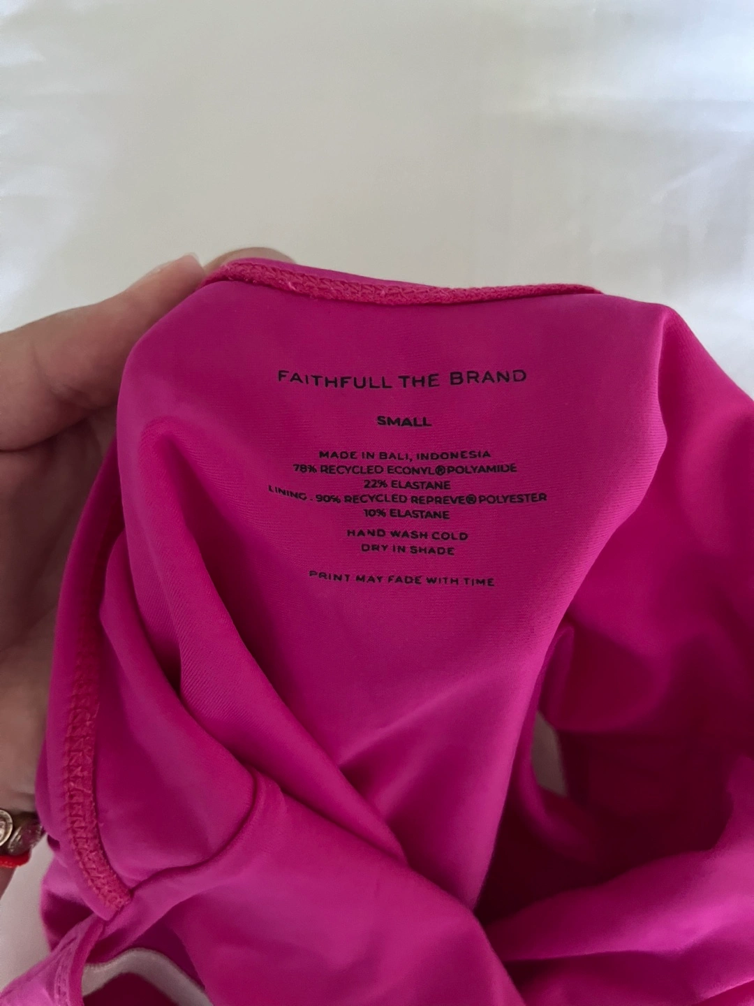 Selling a cute Faithfull the Brand swimsuit in pink! It's a size small and features a stylish one-shoulder design.