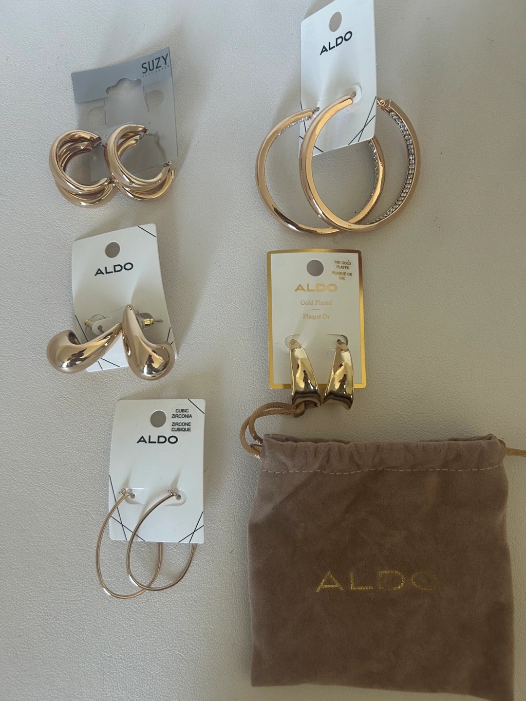 This is a bundle of 5 brand new earrings. None have been worn! One of them is also gold plated ((: value of the bundle is +$75. Received them as a gift but I have very similar pieces! Pouch is included.