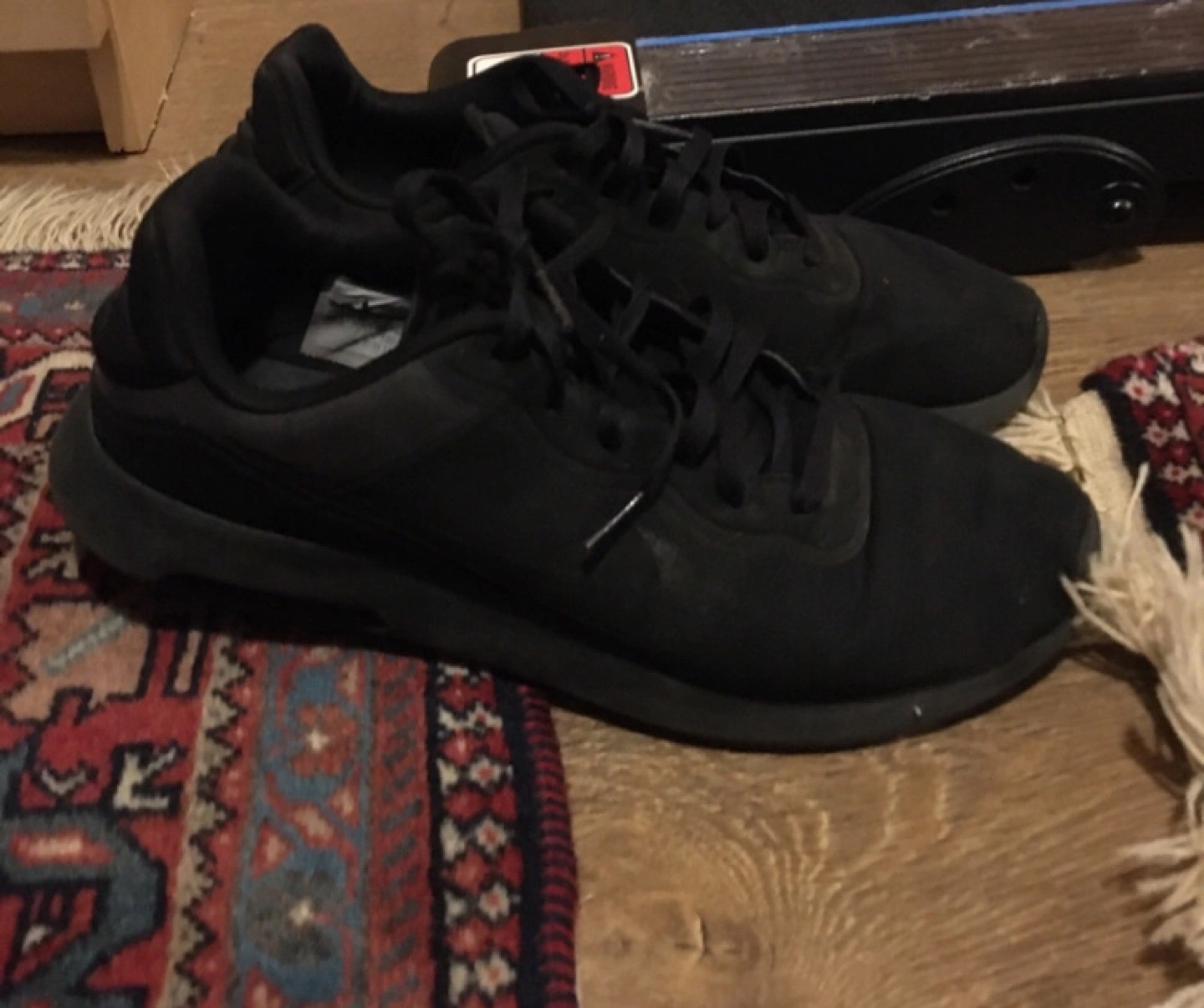 I'm selling a pair of used Nike running shoes in all black, perfect for your athletic needs or casual wear. These shoes have been worn, but they are still in good condition with plenty of life left.